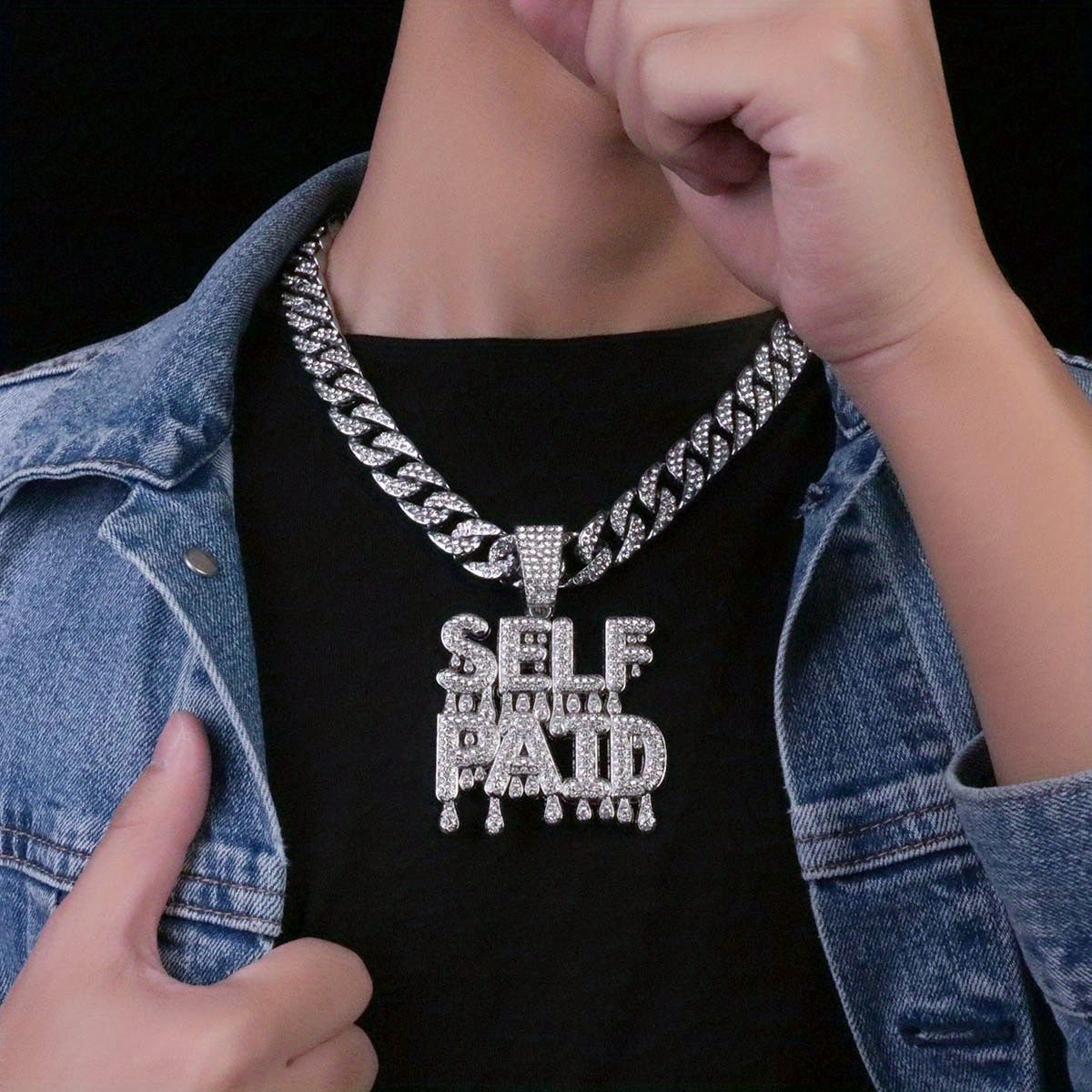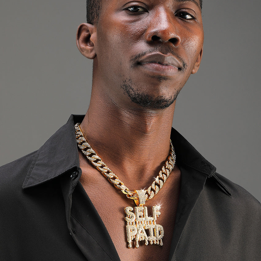 Stand out with this stylish SELFPAID pendant necklace featuring a trendy Cuban chain design. Perfect accessory for hip hop enthusiasts.
