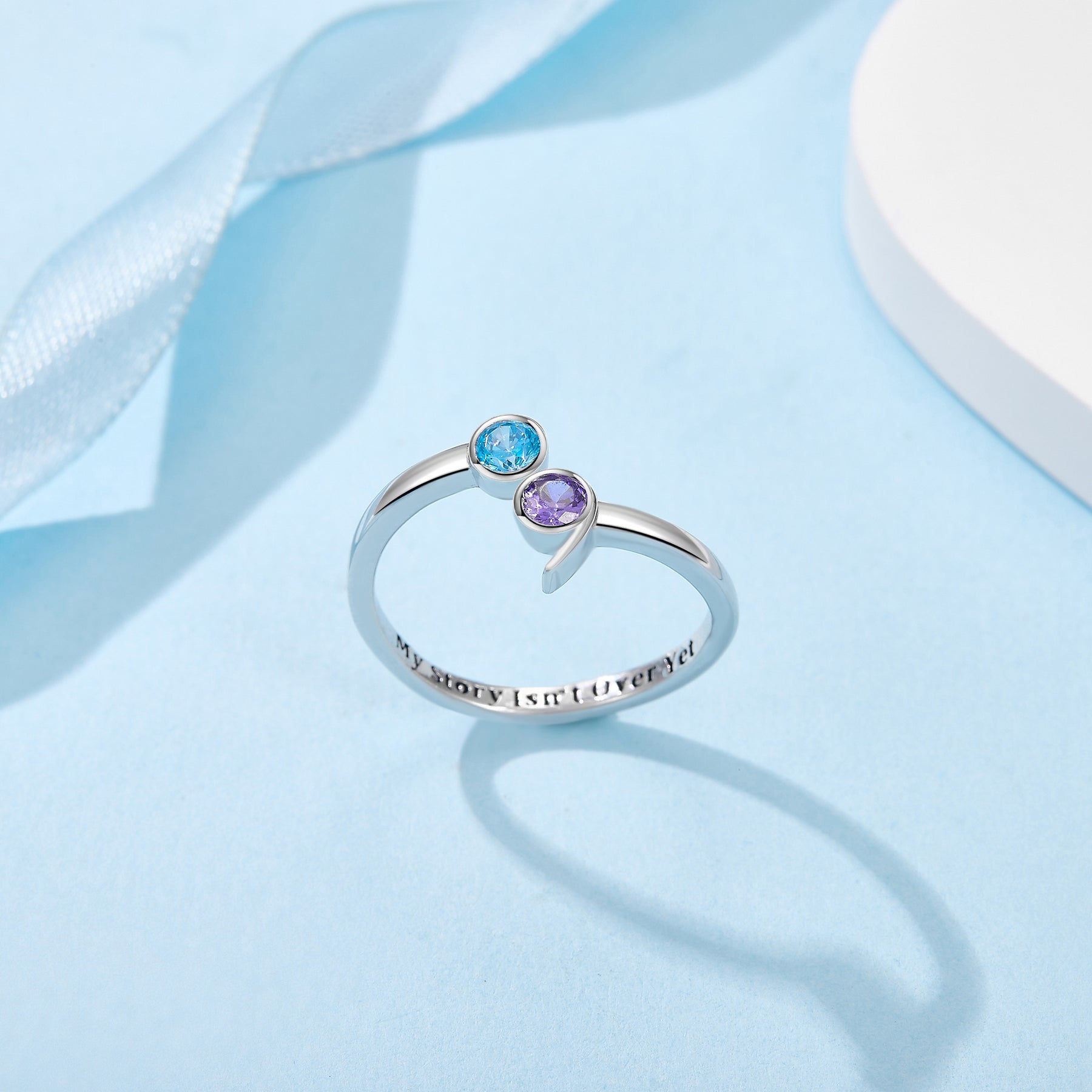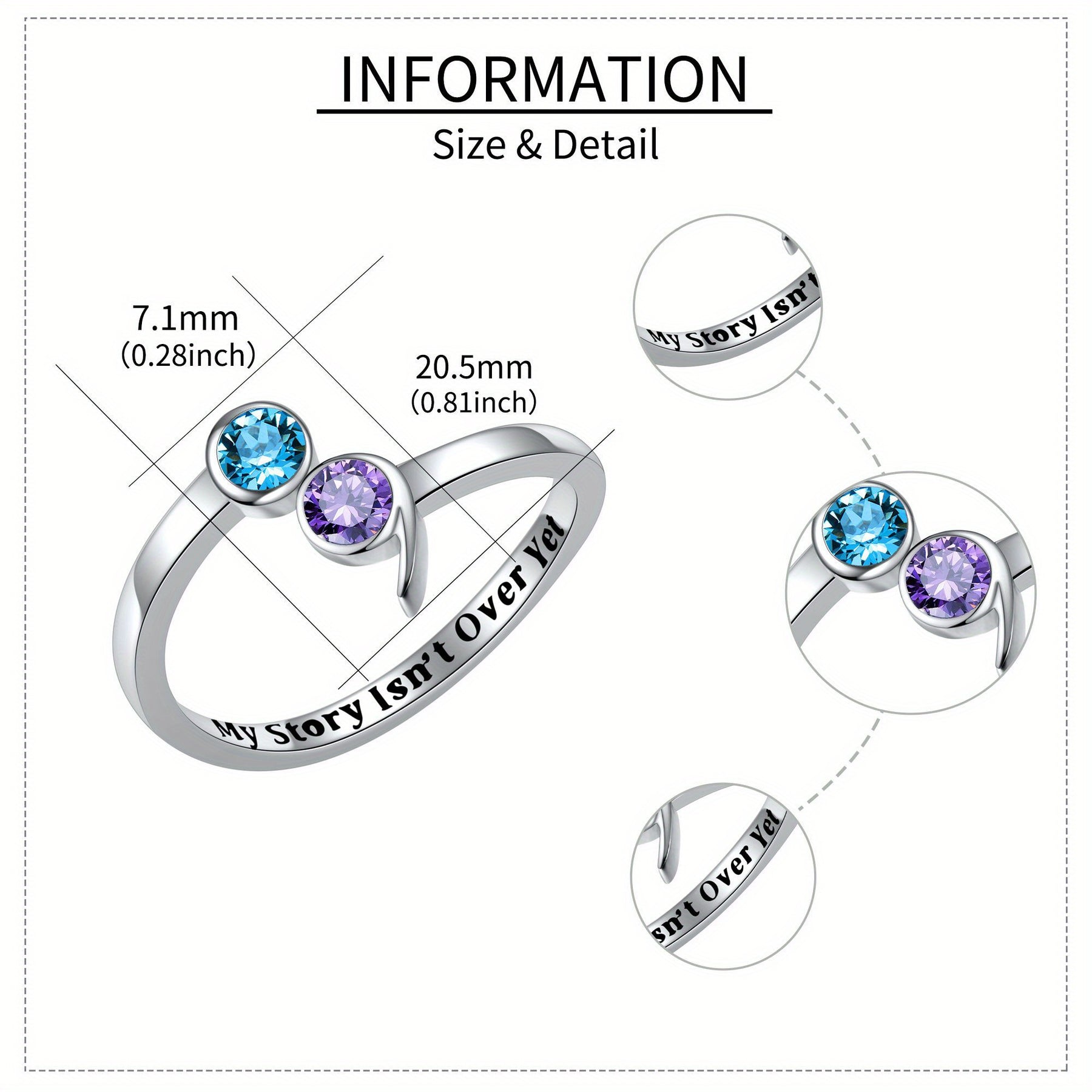 This adjustable ring is made of 925 pure silver and features a zirconia stone. It serves as an inspirational piece with the message 'My Story Is Not Over' to remind you of your strength and resilience.