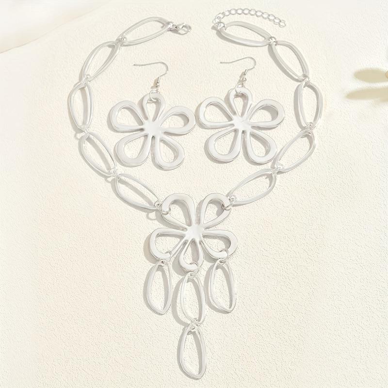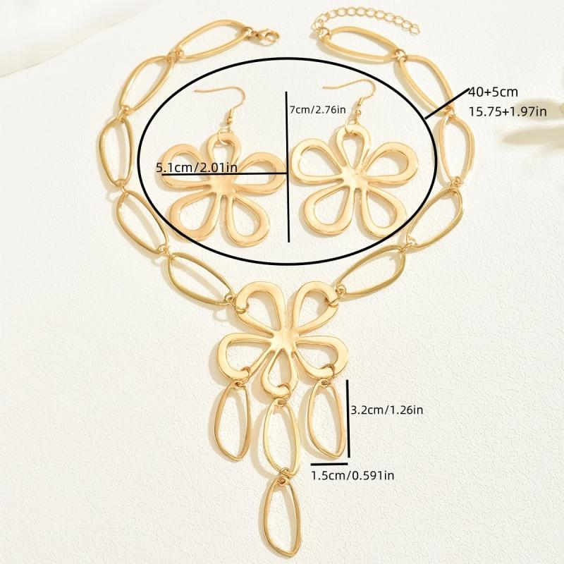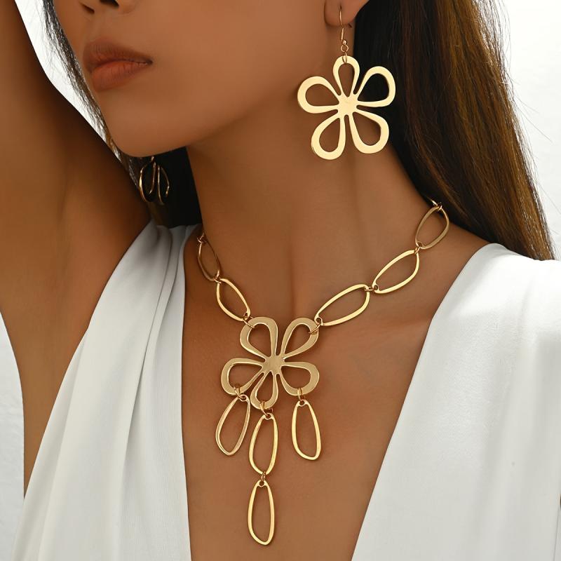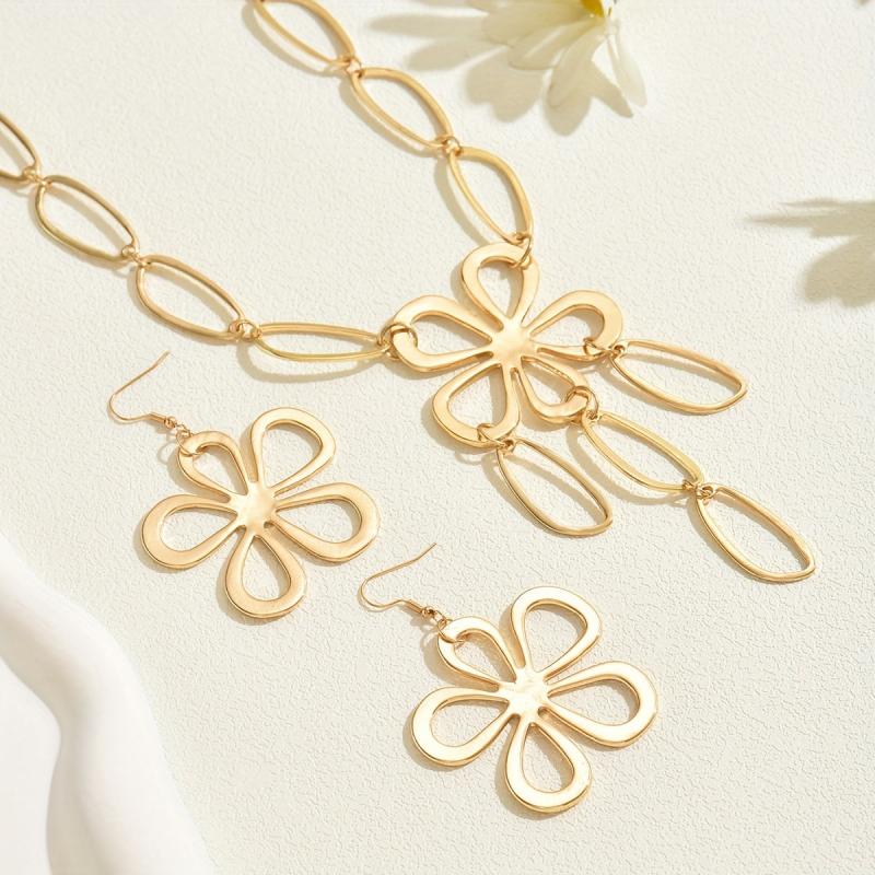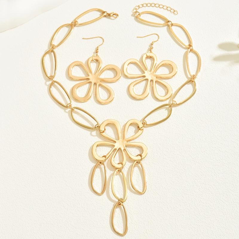 Golden hollow flower pendant set with collarbone chain for daily wear