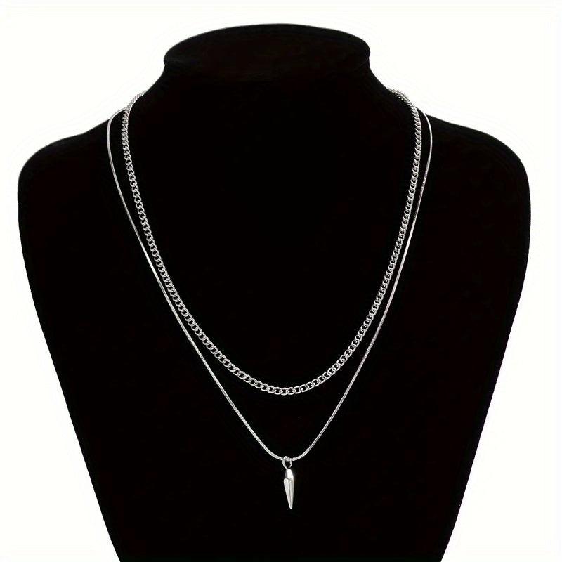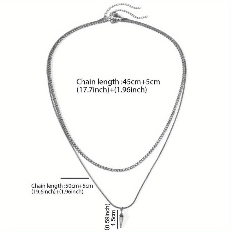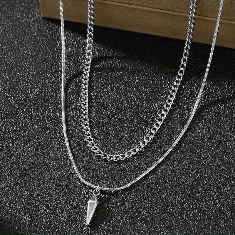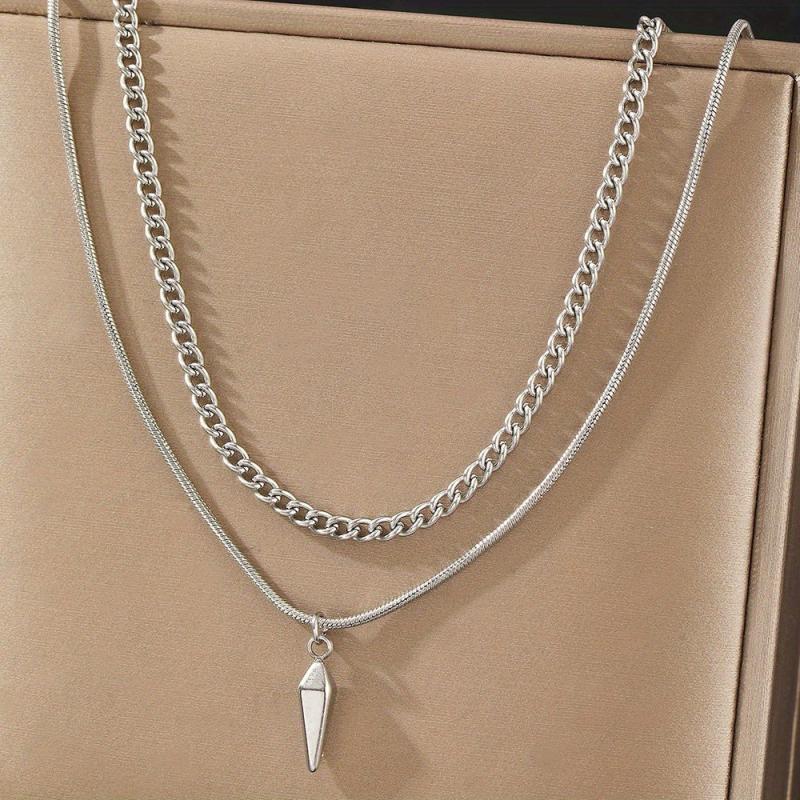 This set includes 2 stylish men's studded pendant necklaces made of durable stainless steel with a snake chain. Perfect for adding a hip hop vibe to your outfit.