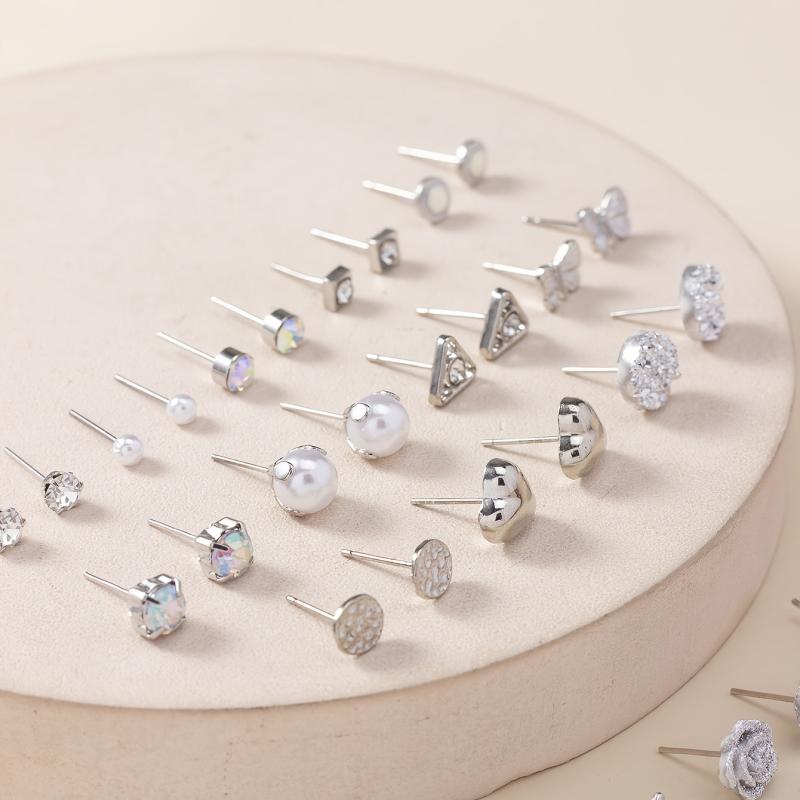 These stylish minimalist earrings are perfect for everyday wear and make a great holiday gift. Each pair features a unique design with matte finish and rhinestone accents.