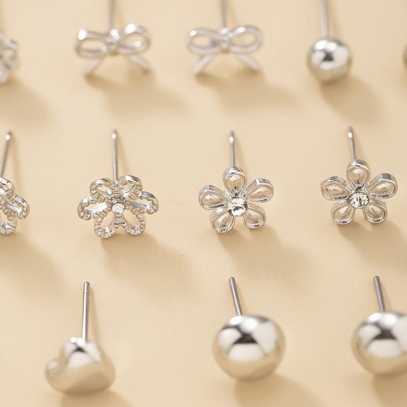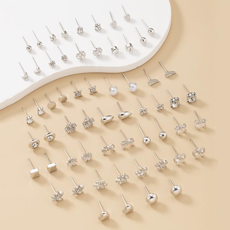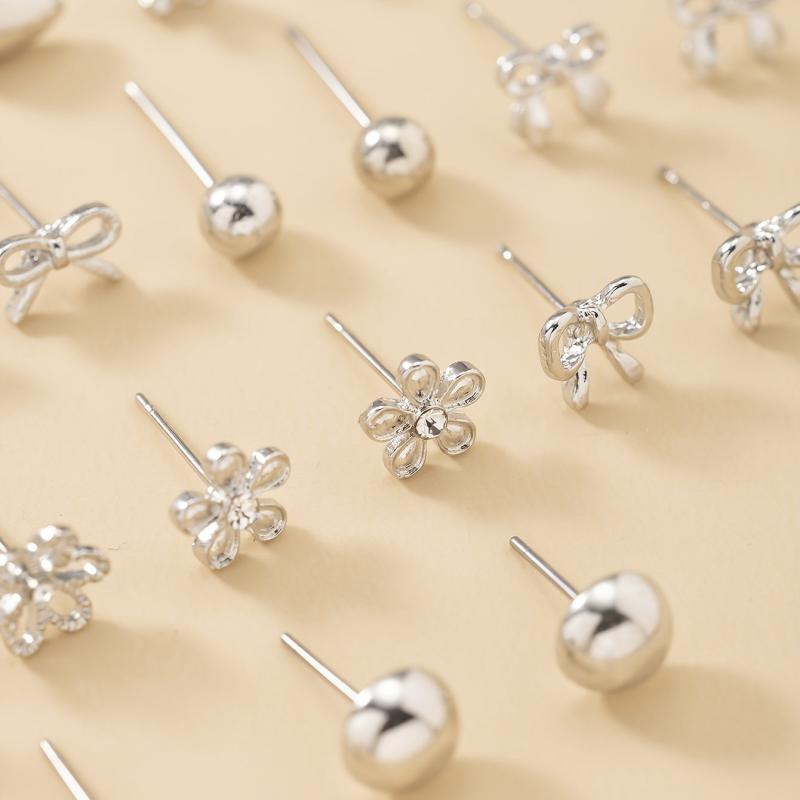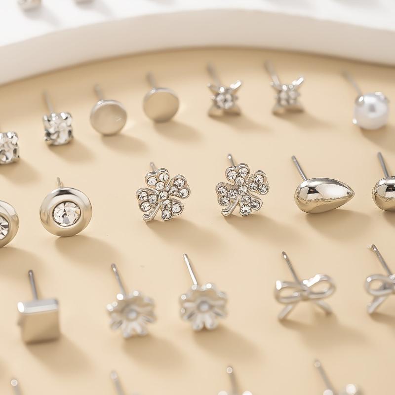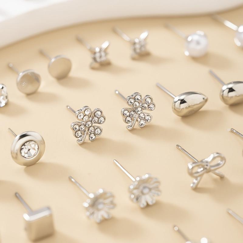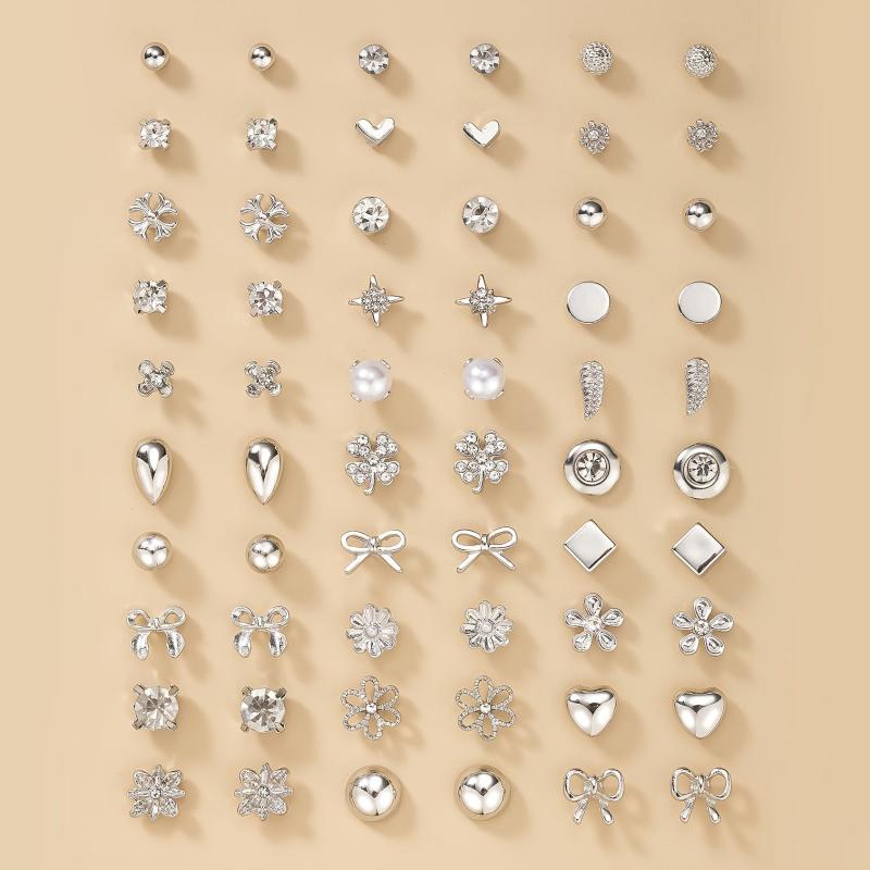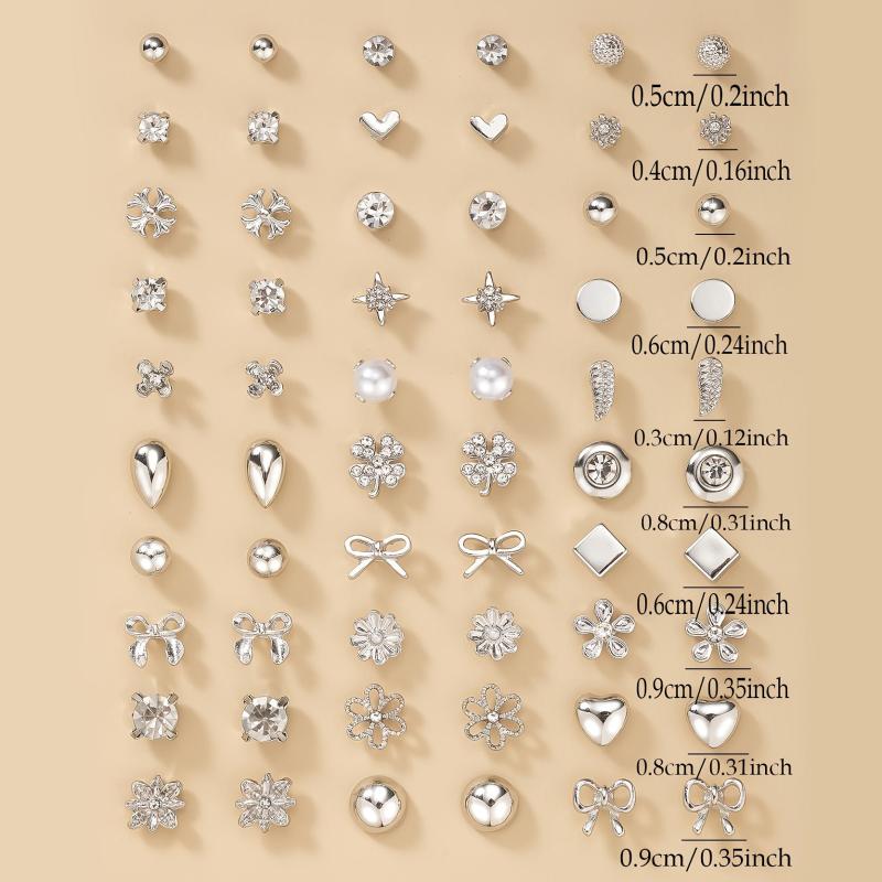 Surprise your loved ones with this set of 30 pairs of silvery metal water drill heart-shaped faux pearl earrings in assorted flower designs. Perfect gift for the holiday season.