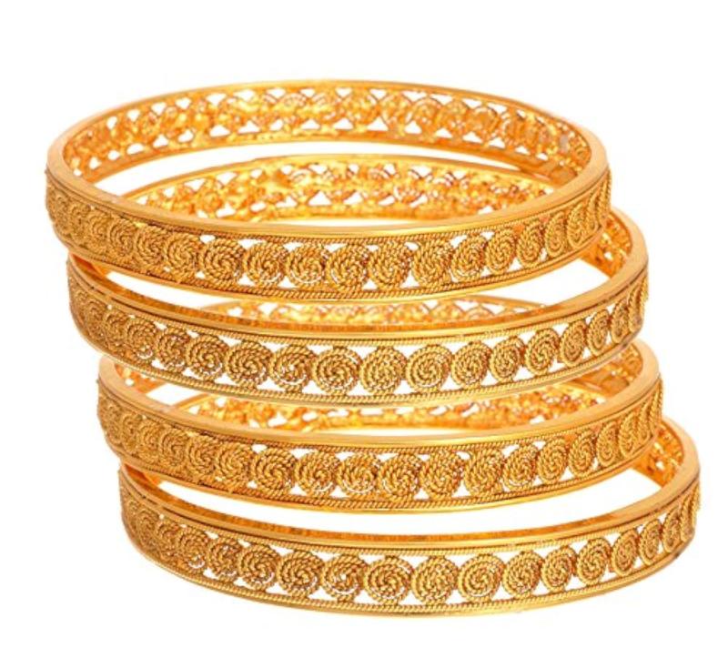 Elegant set of 4 copper bangles with intricate design, perfect for daily wear or special occasions.