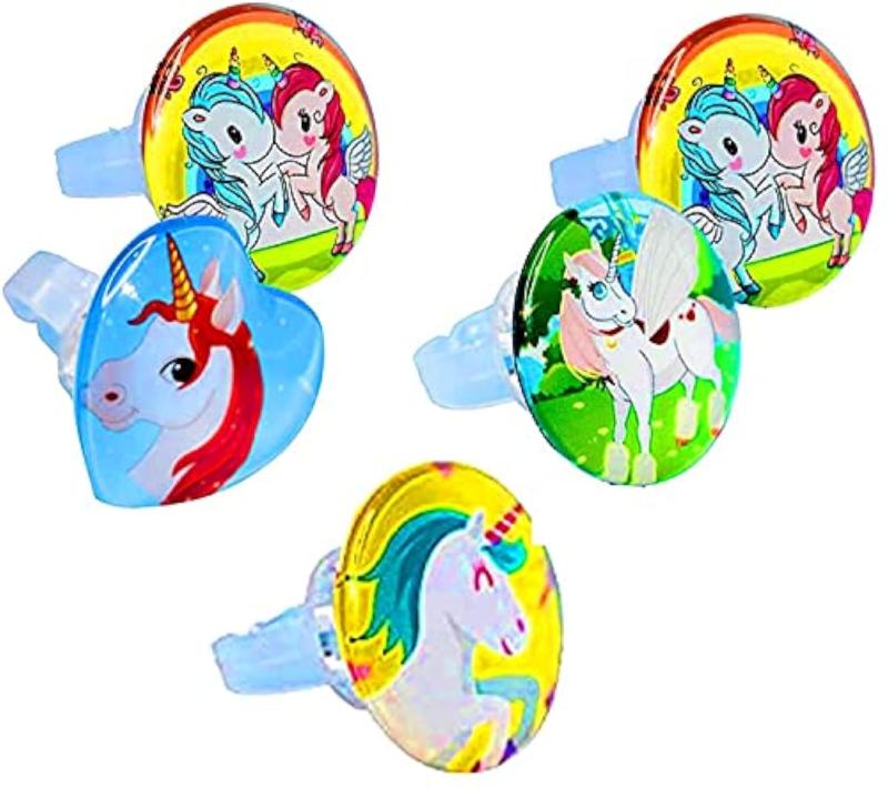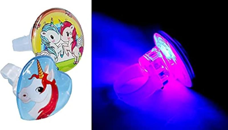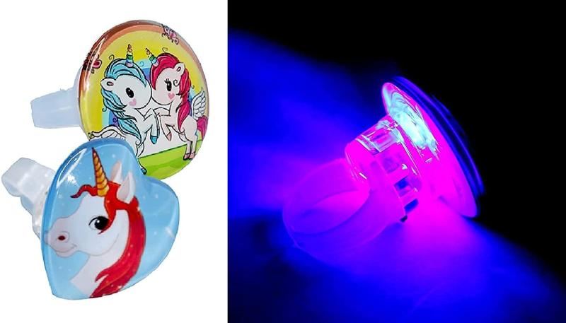 Bring a touch of magic to playtime with this pack of 4 unicorn-themed finger rings that light up. Perfect for imaginative play and gifting on birthdays.