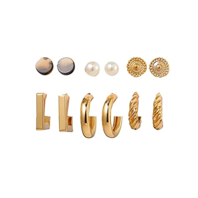 This set includes 9 pairs of stylish earrings in different designs. Made of durable materials with a plated finish, perfect for daily wear.