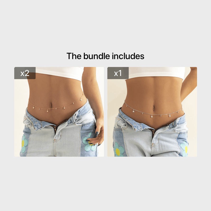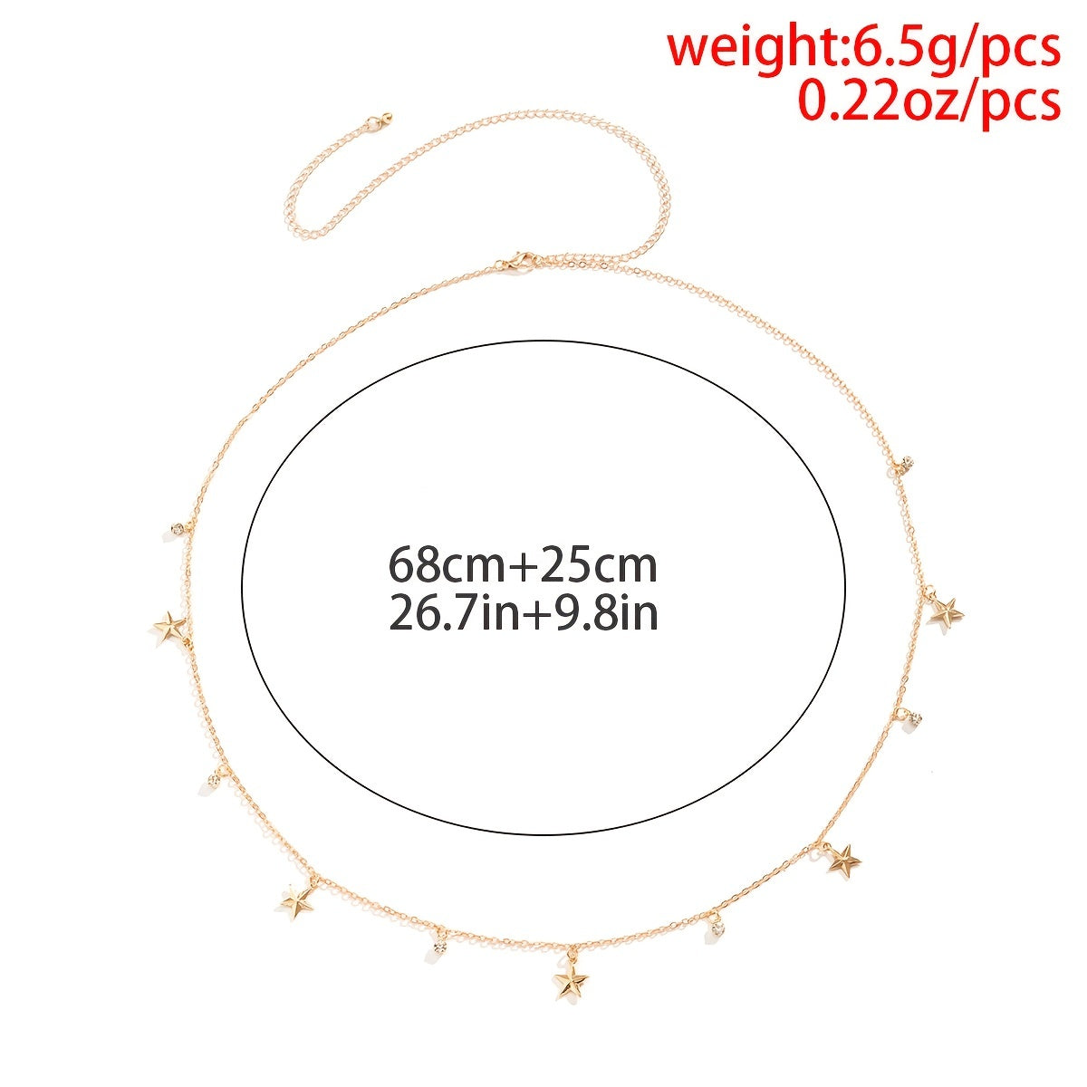 Add a touch of glam to your outfit with this stunning waist belly belt chain featuring crystal star pendants. Perfect accessory for a stylish look.