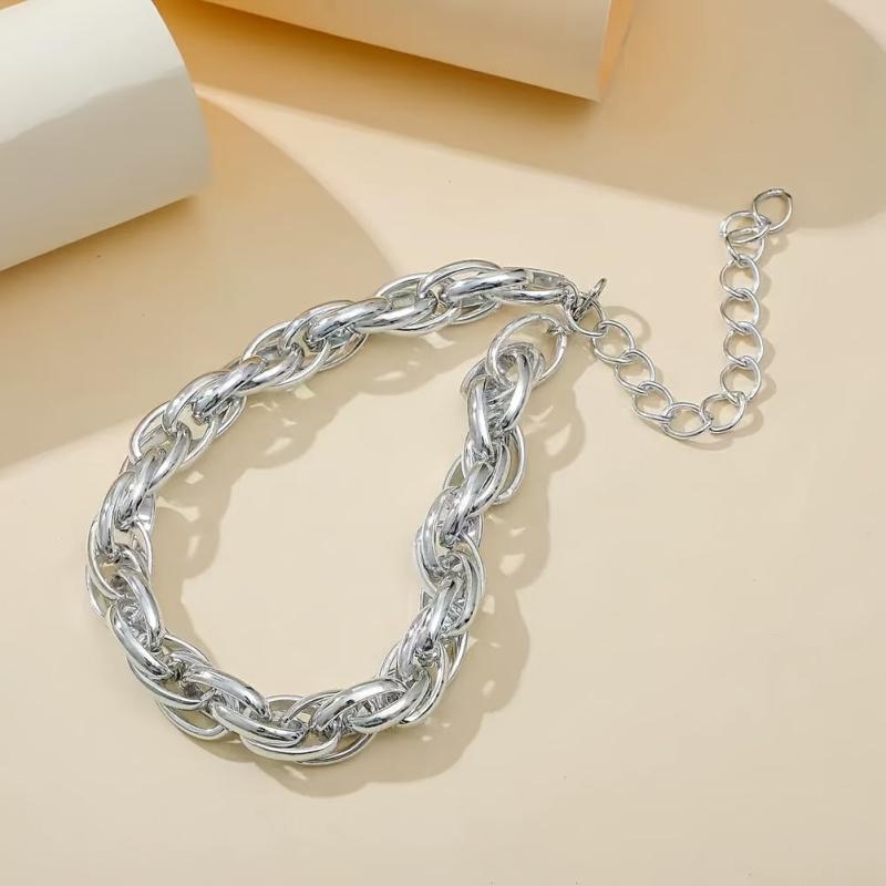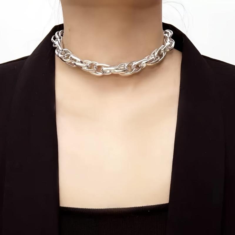 Add a touch of glamour with this intricately linked choker necklace. Perfect for parties and holidays, this sleek chain necklace is a must-have accessory.