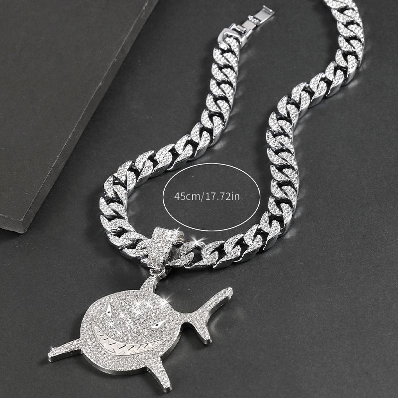 Make a bold statement with this shark pendant necklace featuring a stylish Cuban chain. Crafted from high-quality stainless steel, this hip hop jewelry piece is perfect for adding an edgy touch to your look.
