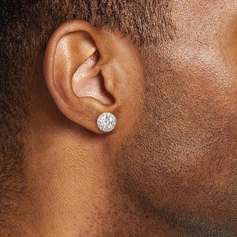 Elegant and stylish, these 925 sterling silver earrings feature 0.5CT round cut brilliant Moissanite studs with screw backs. Perfect gift idea for men.