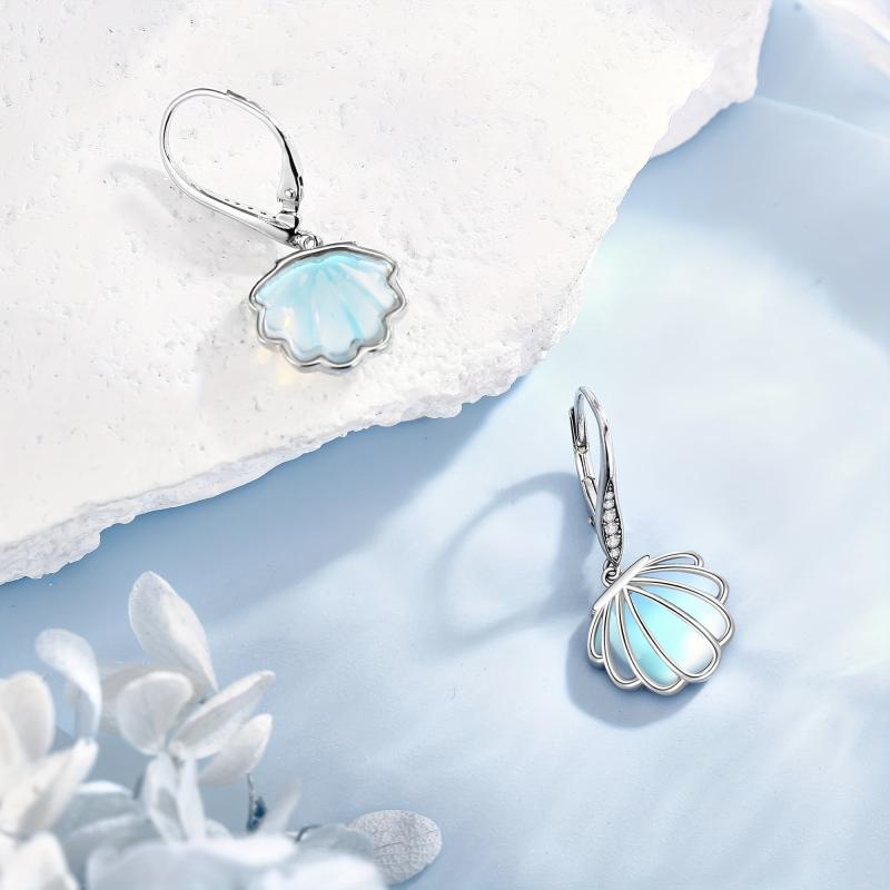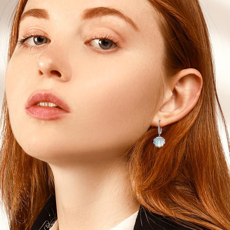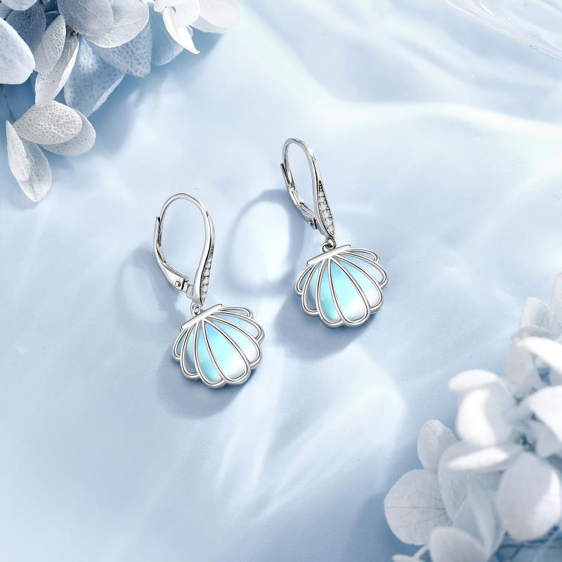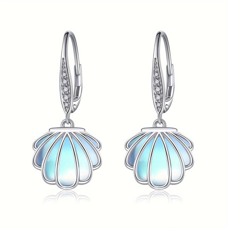 Enhance your style with these exquisite 925 sterling silver shell earrings featuring moonstone accents. Perfect for ocean lovers, these leverback earrings add a touch of elegance to any outfit.