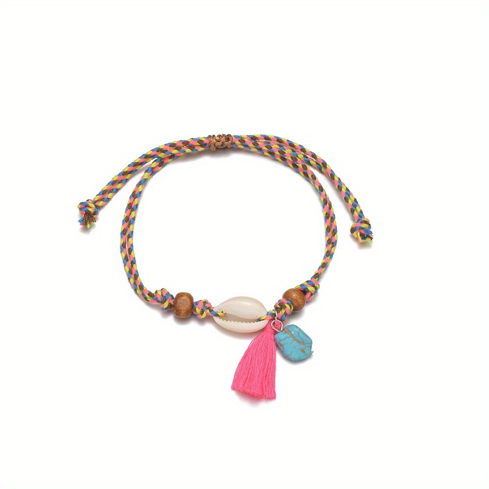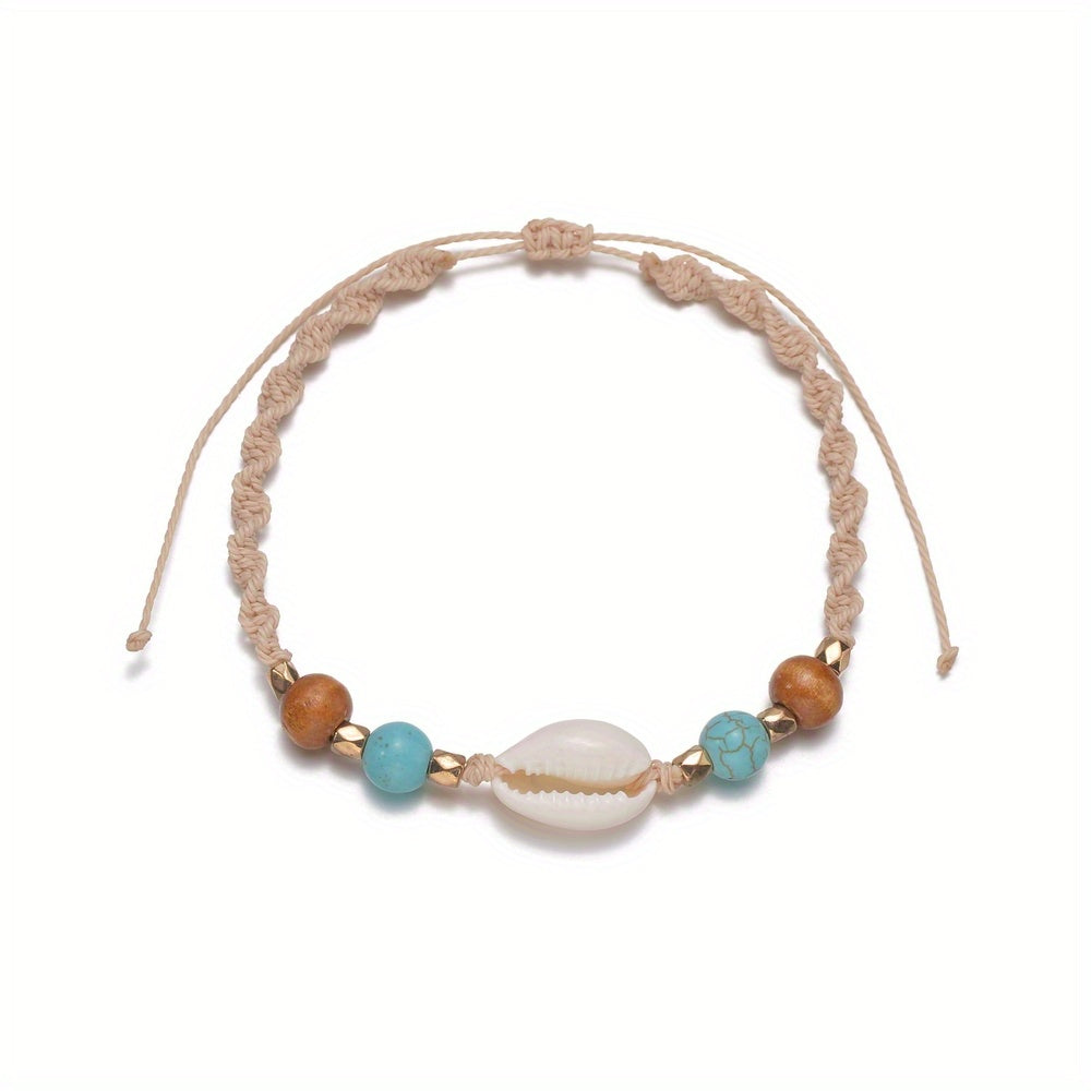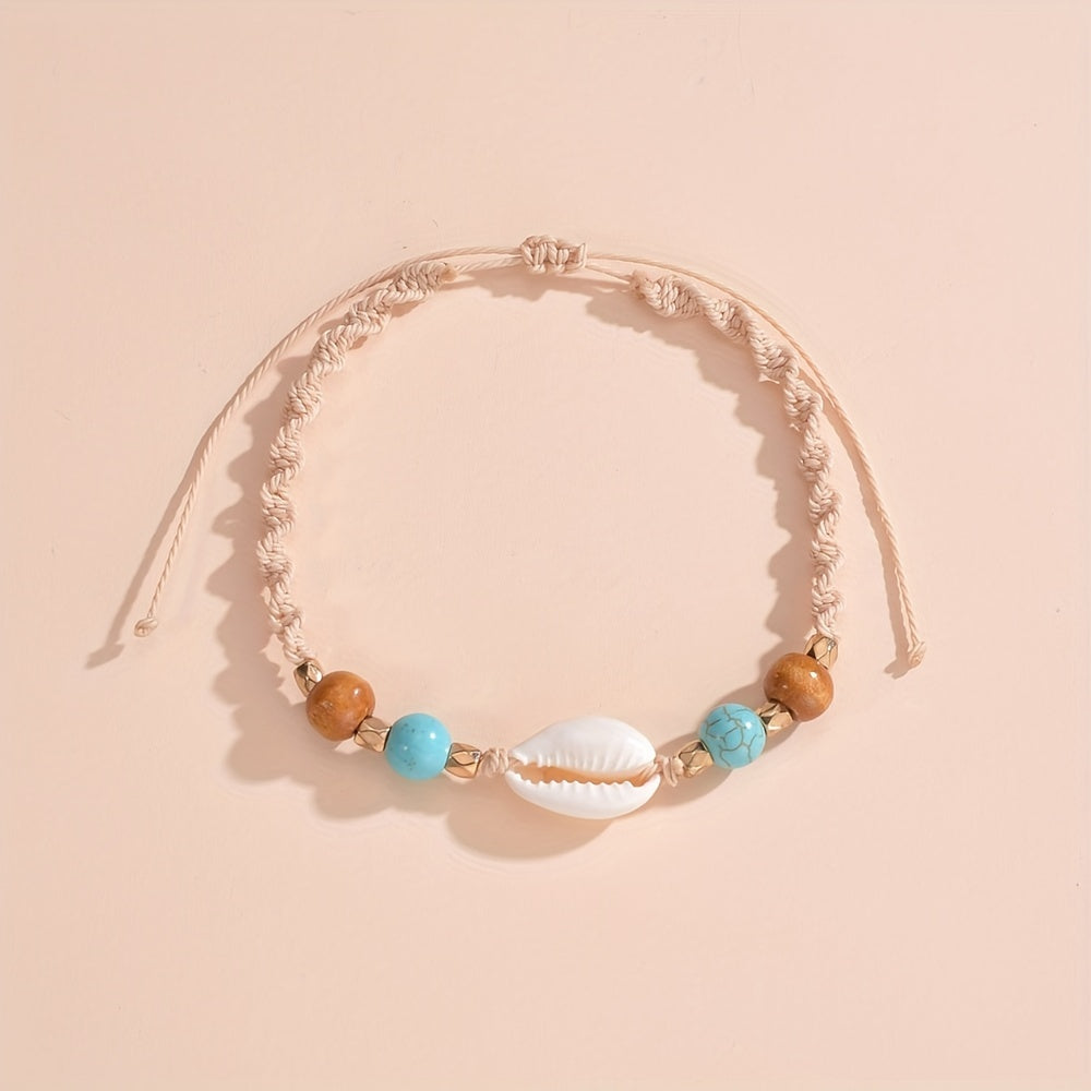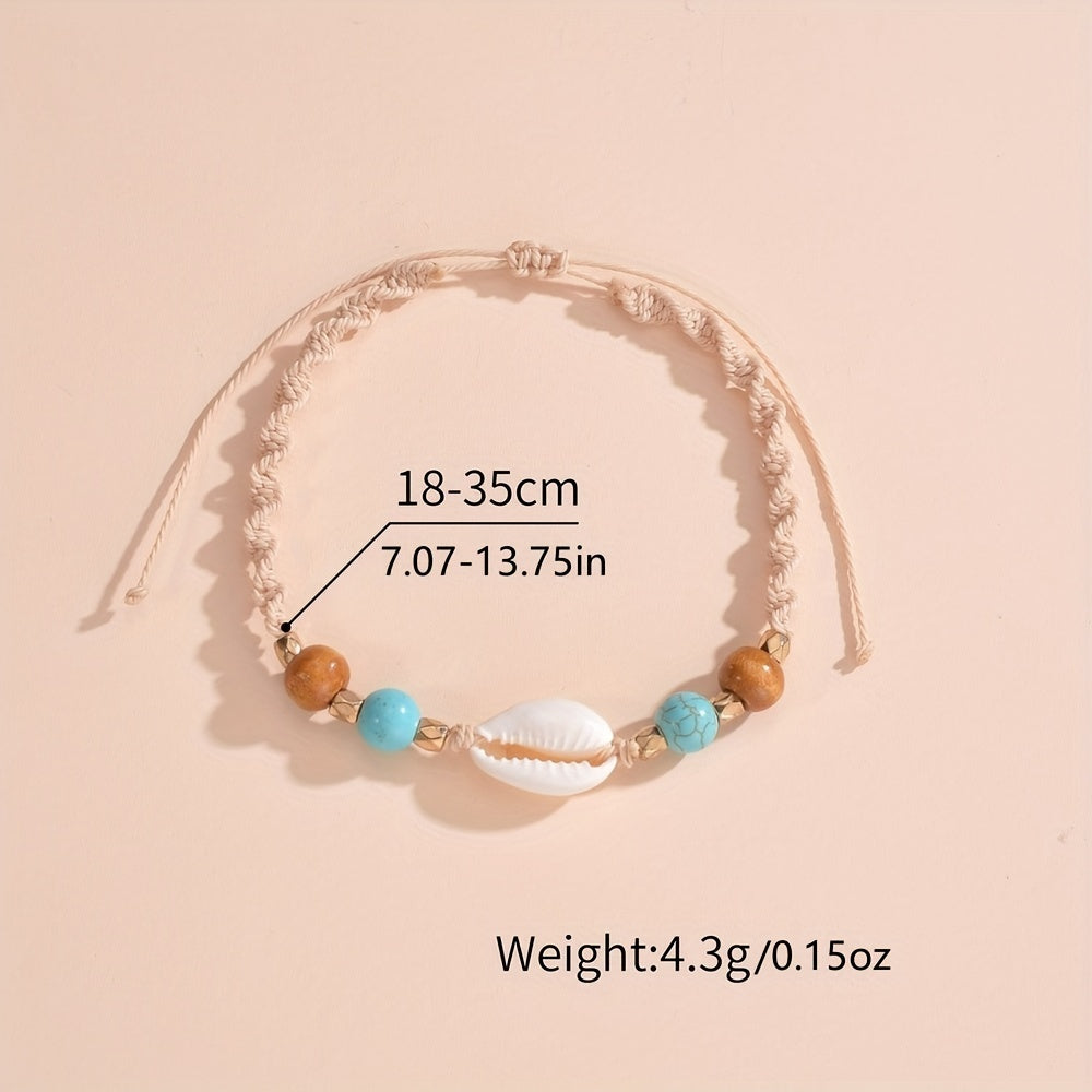 Elegant ankle bracelet featuring shell shape beads, perfect for adding a touch of beachy style to your look. Adjustable design to fit most ankles.