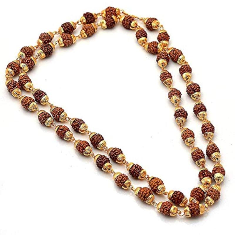Beautifully crafted Shiva God plated Rudraksh Mala chain with a length of 28 inches.