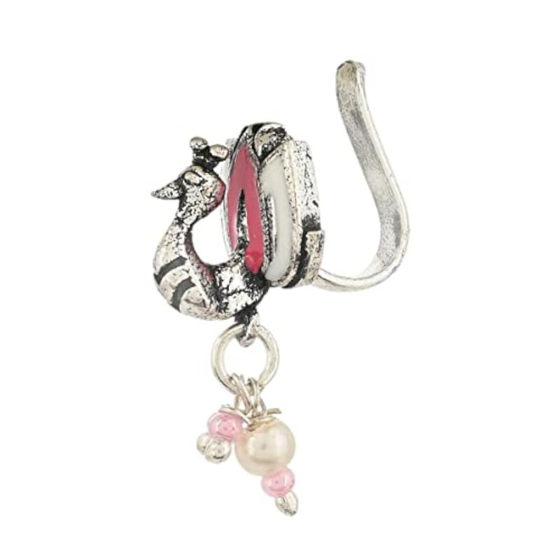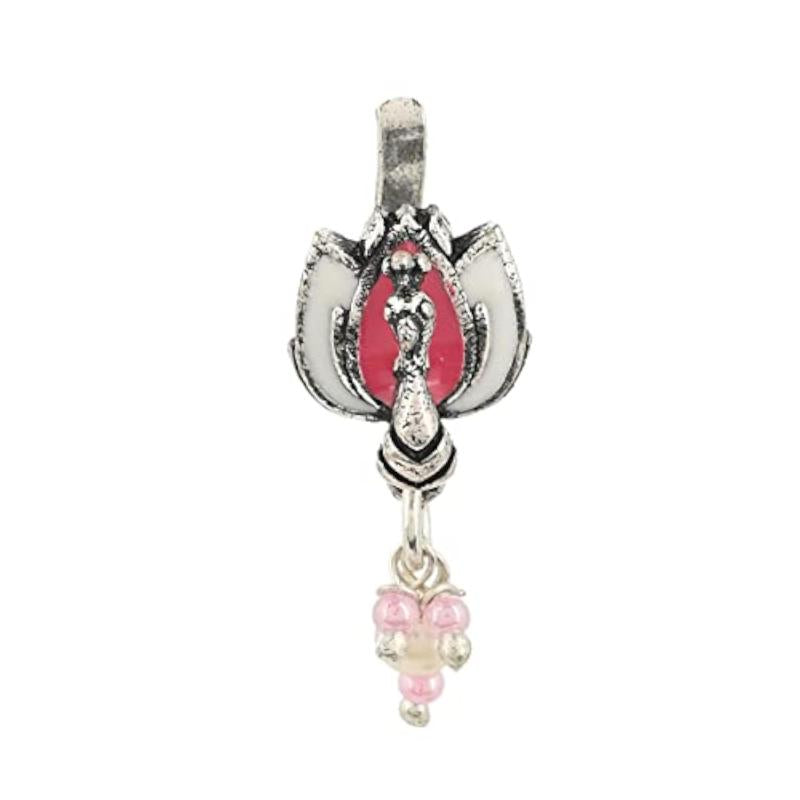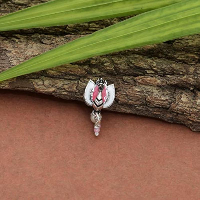This nose pin features a brass plated design with lightly embellished lotus motif for a delicate and elegant look.