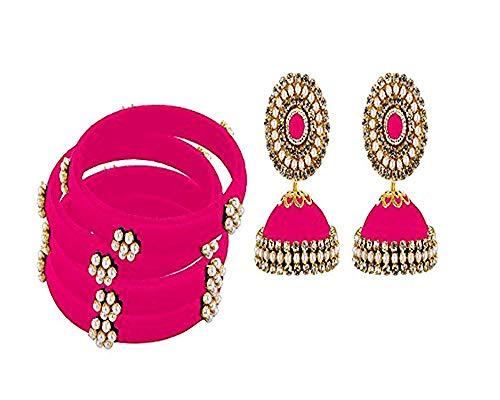 Beautiful silk bangles and earrings set with jhumki design. Available in size 2/6.