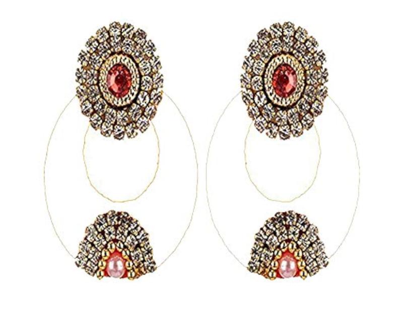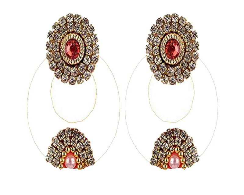 Elegant Silk Chandbali moon earrings with sparkling rhinestones that add a touch of glamour to your look.