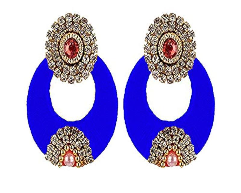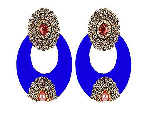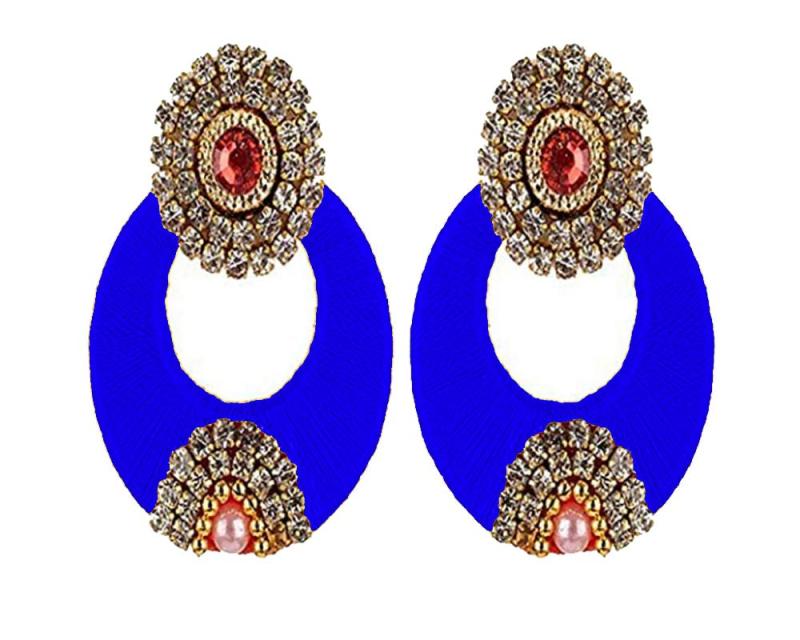 Elegant silk chandbali moon earrings with sparkling rhinestones for a touch of glamour.