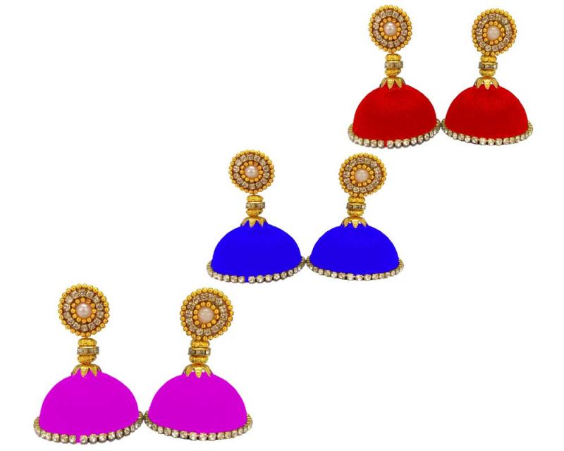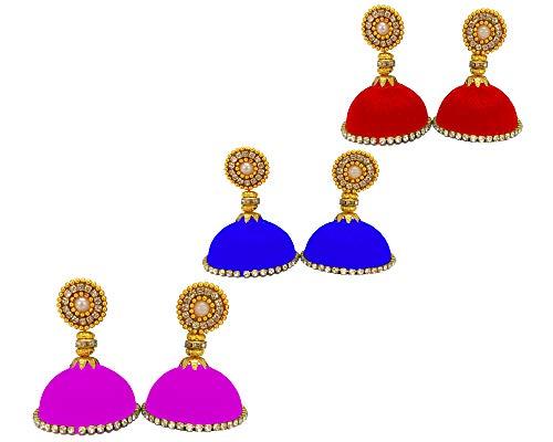 Elegant set of 3 silk jhumka earrings with intricate silk dori design.