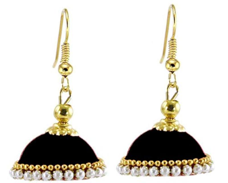 Stunning silk jhumki earrings with intricate silk dori design. Perfect for adding a touch of elegance to any outfit.