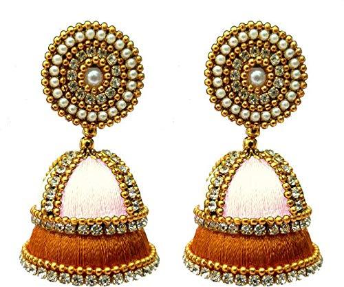 Elegant jhumki earrings made from silk dori, perfect for fabric attire.
