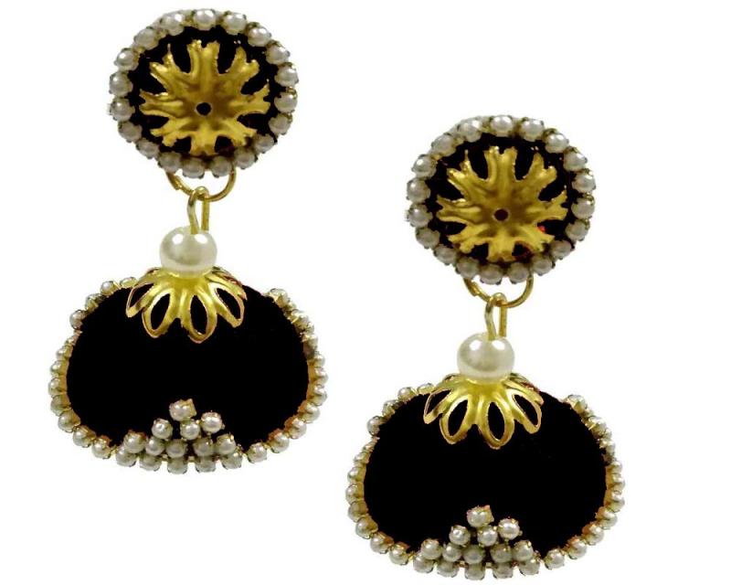 Elegant jhumki earrings made from silk thread and plastic beads.