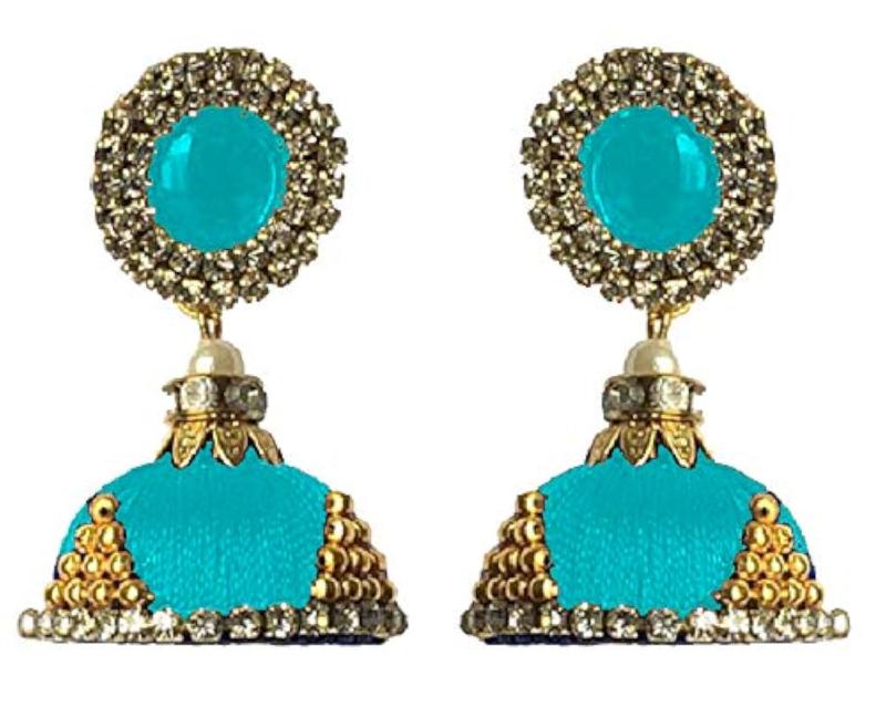 Add a touch of sophistication to your look with these elegant silk dori jhumki earrings. Perfect for special occasions or everyday wear.