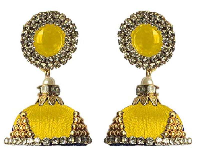 These exquisite jhumki earrings feature a silk dori design with intricate details, perfect for adding a touch of elegance to any outfit.
