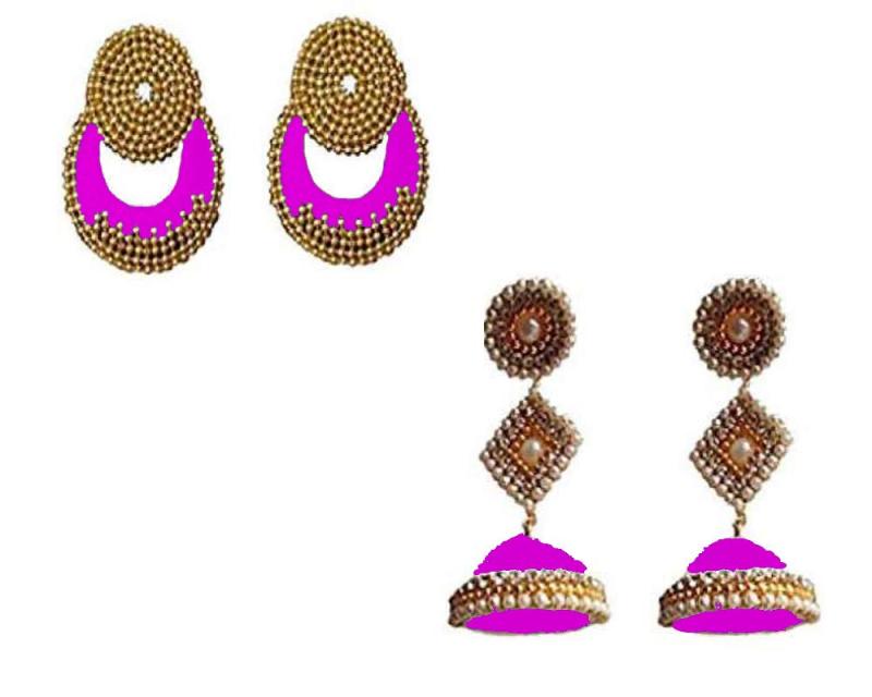 Elegant set of Silk Jhumka and Chandbali earrings for a stunning look.