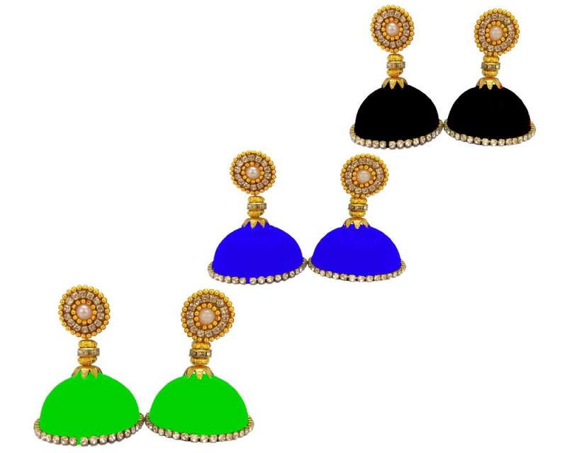 Elegant set of 3 silk dori jhumka earrings in beautiful design.