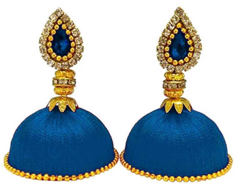 This beautiful silk jhumka earring is a perfect accessory for women to add a touch of elegance to any outfit.