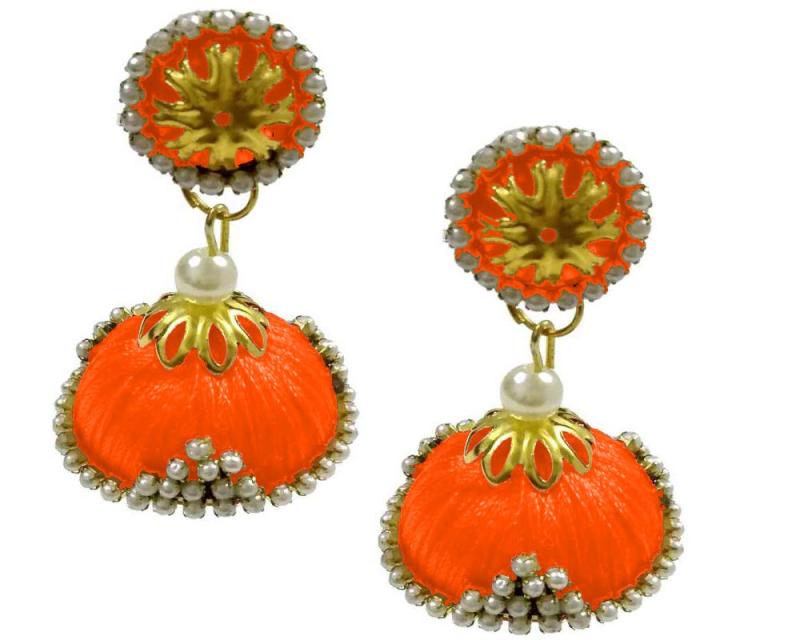 Elegant silk dori jhumki earrings made with plastic and silk material.