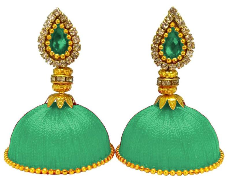 Beautiful silk dori jhumki earrings in vibrant colors, perfect for adding a traditional touch to your outfit.