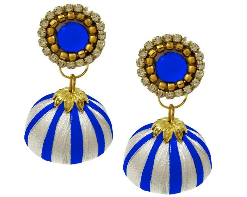 Elegant silk jhumki earrings in white color. Beautifully designed for a traditional look.