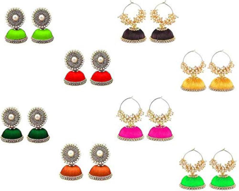 Add a touch of elegance to your outfit with this combo set of jhumki, hoop and stud earrings. Crafted from non-precious metal, these earrings are perfect for everyday wear.