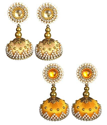 Silk Pearl Jhumka Earrings for Beads Fabric Jhumki Earring