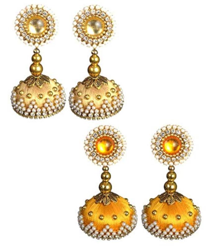 - Elegant silk pearl jhumka earrings