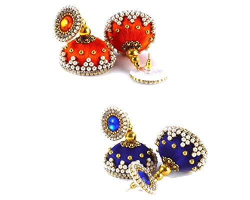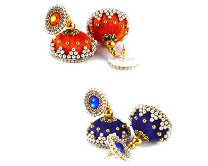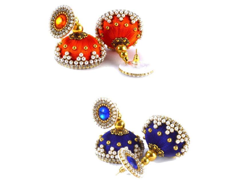 Elegant and stylish Silk Pearl Jhumka Earrings featuring beads and fabric. These Jhumki Earrings are perfect for adding a touch of sophistication to your outfit.