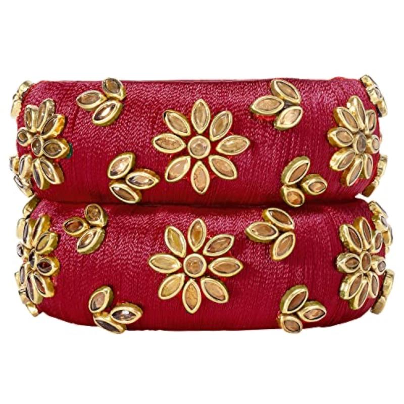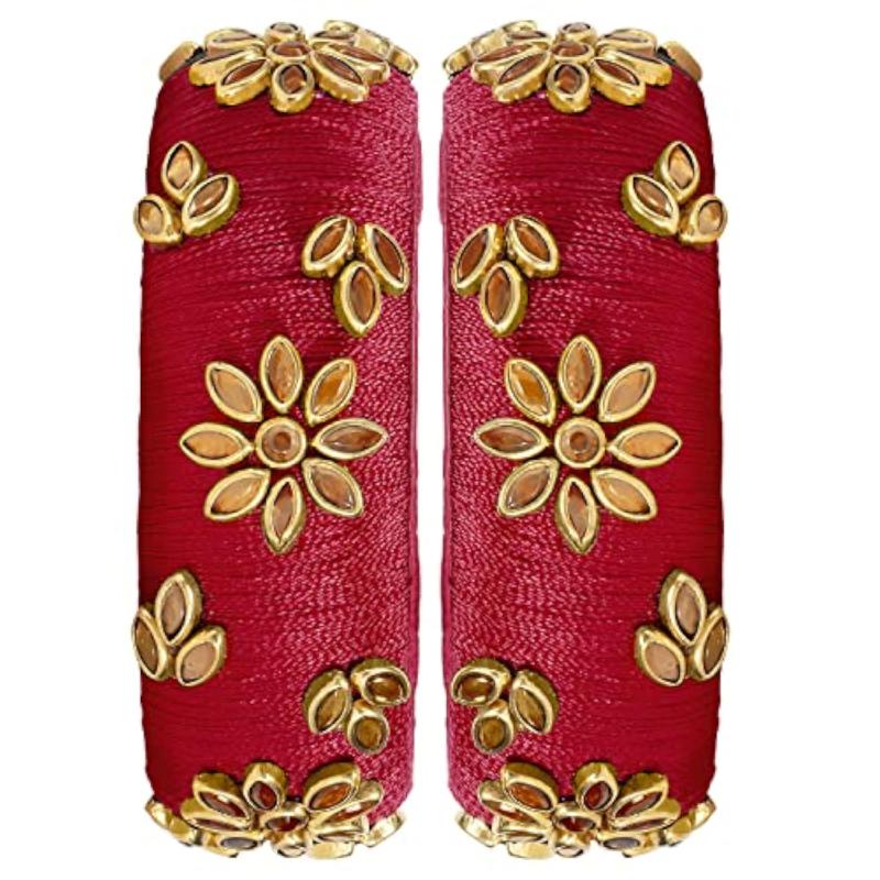 Elegant and unique silk thread bangle set with floral design. Perfect for festive occasions.