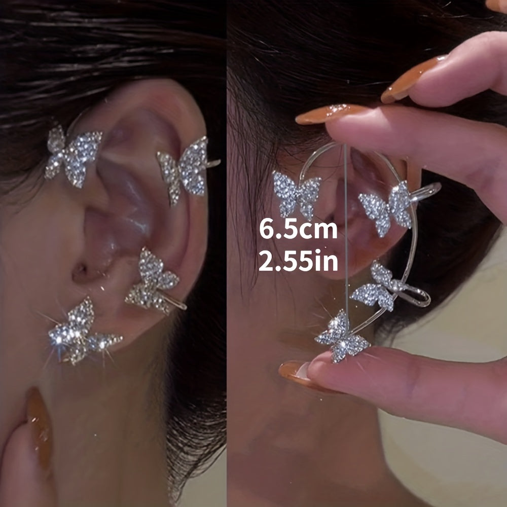 Add a touch of elegance with these butterfly ear clips. Made of silver metal, embellished with sparkling zircon, perfect for weddings and special occasions.