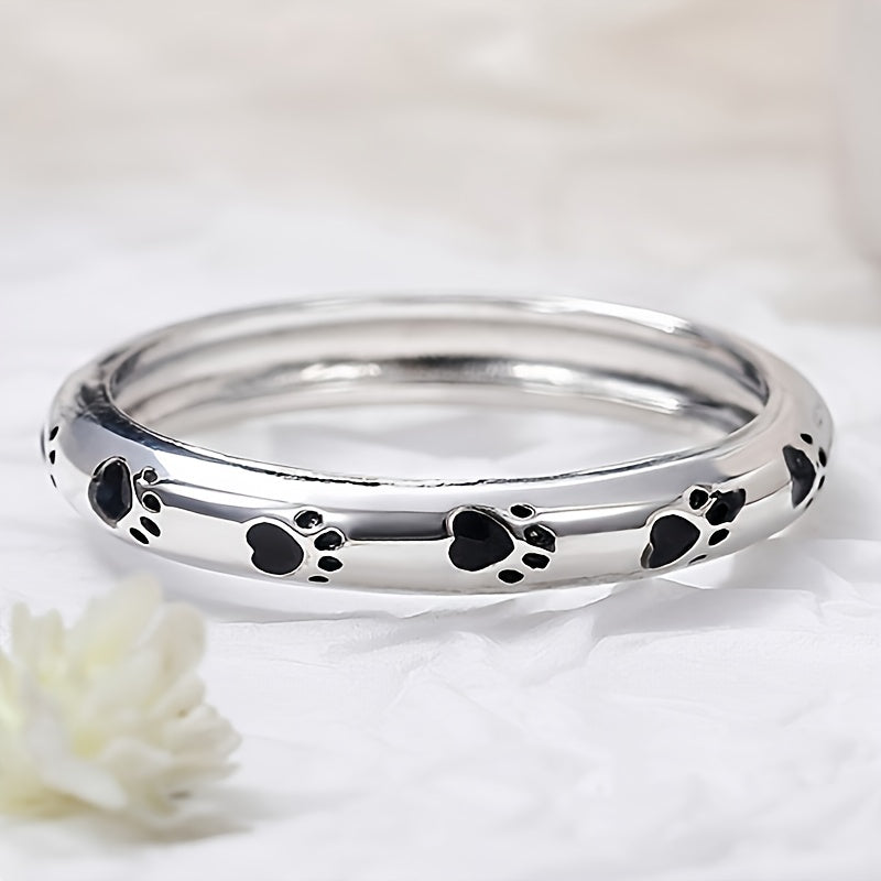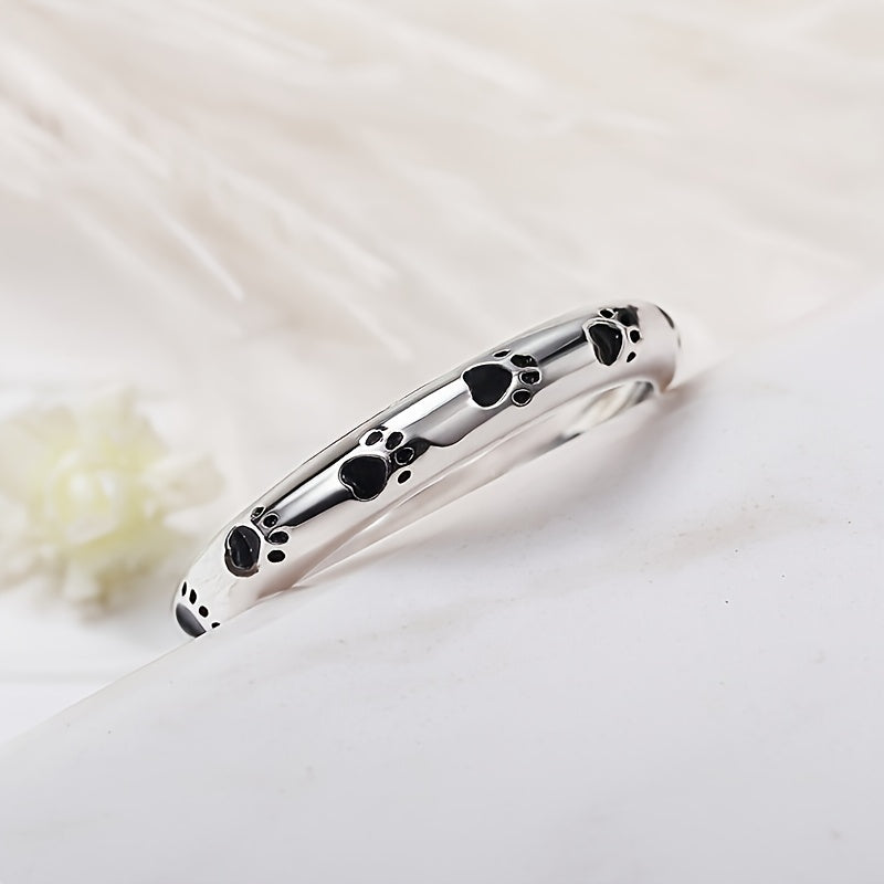 Silver Cat Dog Footprints Stackable Finger Rings For Women Girls