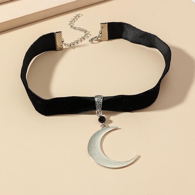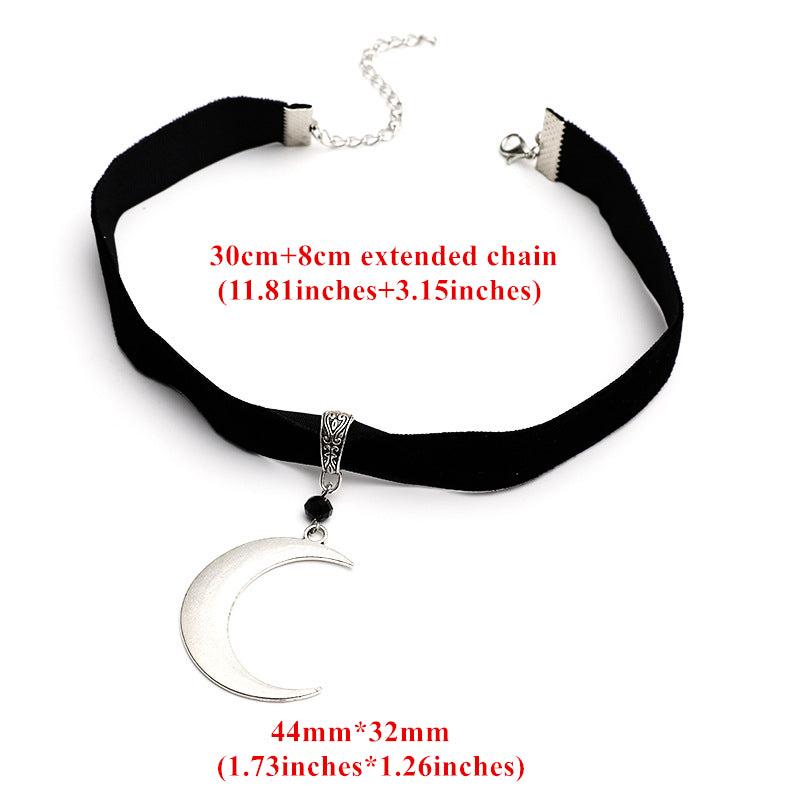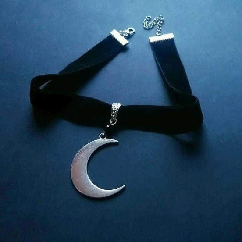 Add a touch of mystical charm to your look with this silver crescent moon pendant choker necklace. Perfect for anyone who loves gothic, witchy, or punk jewelry styles.