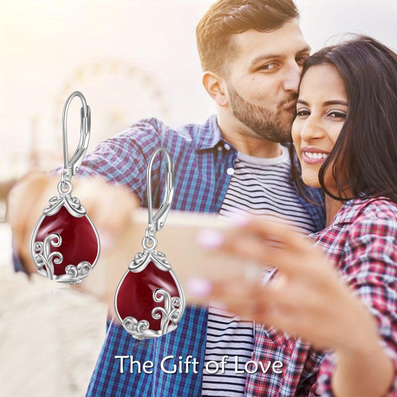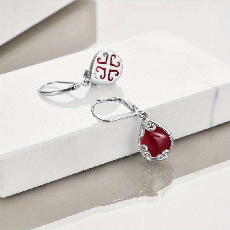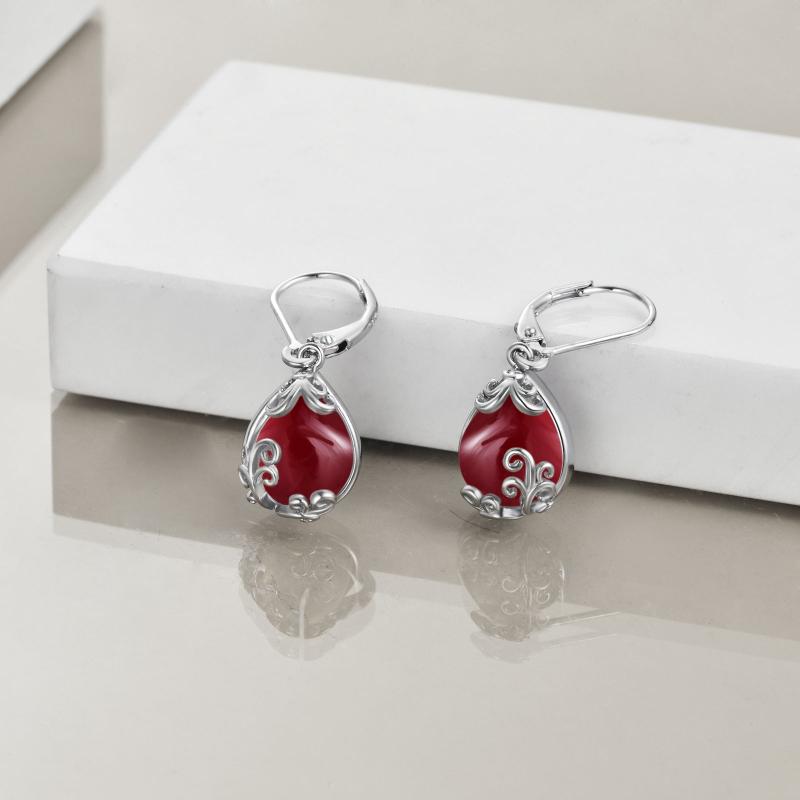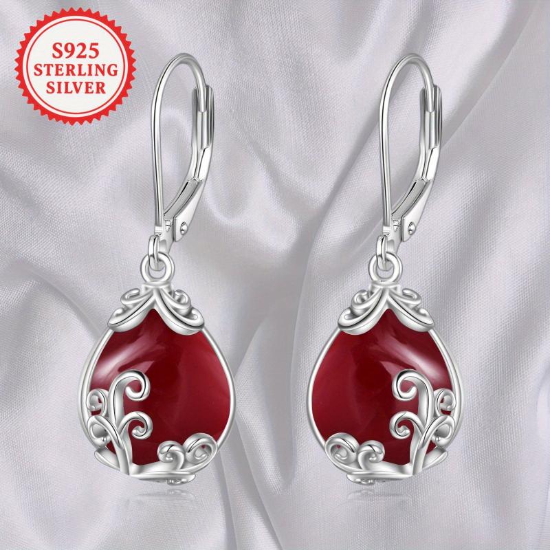 Elegant sterling silver earrings with red synthetic garnet teardrops. Perfect for women who love unique jewelry pieces.