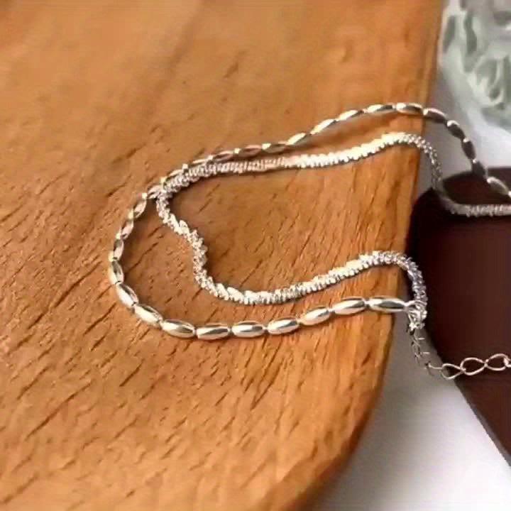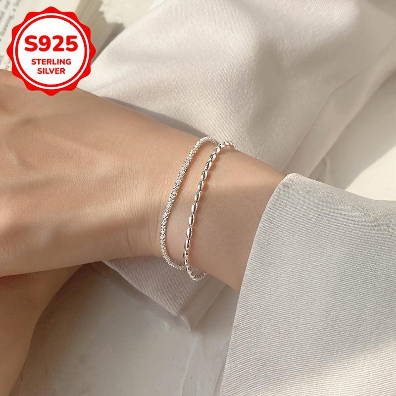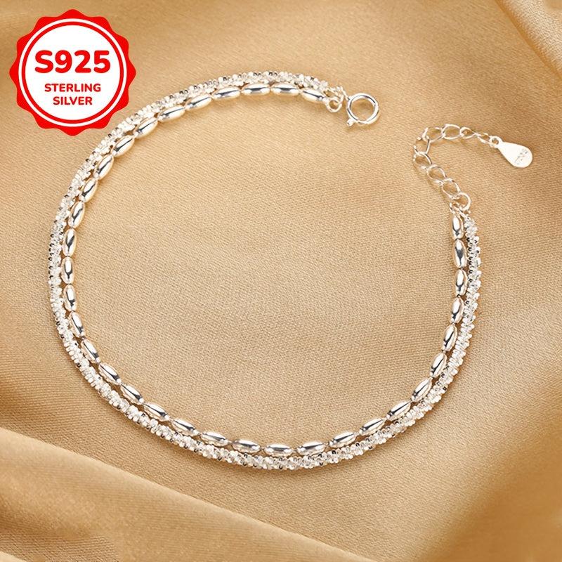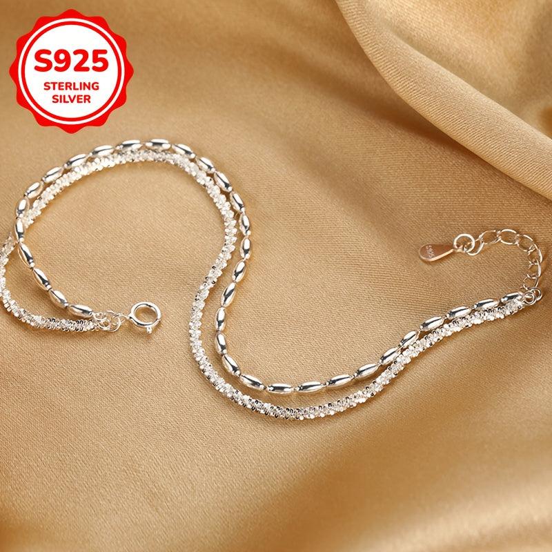 Enhance your summer look with this S925 silver layered bracelet featuring a pure silver moon pendant. Waterproof and perfect for the beach.