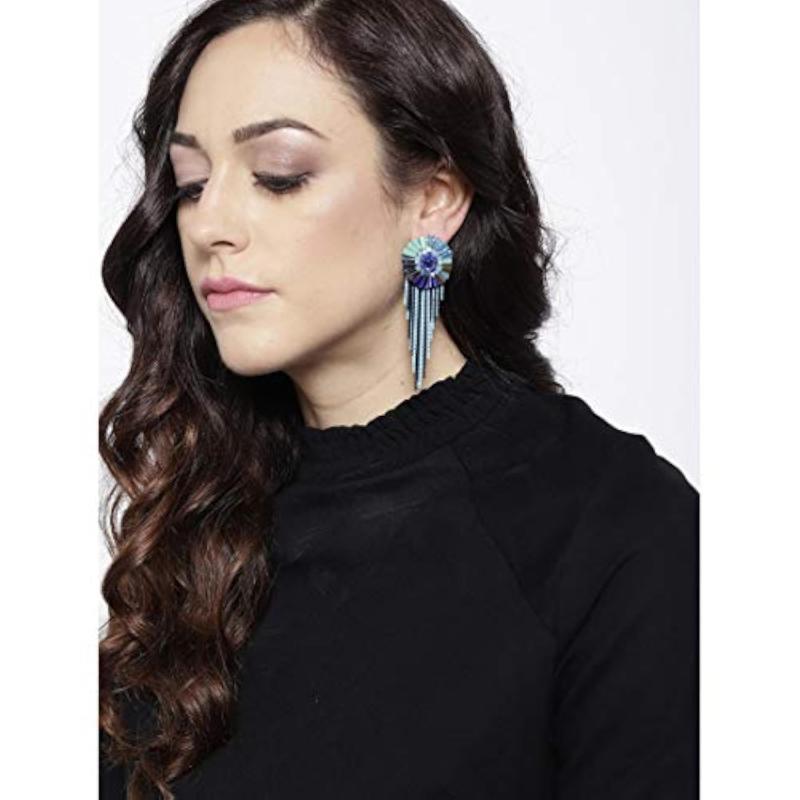 Elegant silver plated earrings with crystal and bead details, perfect for any occasion.