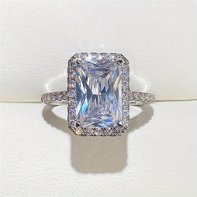 This stunning silver plated ring features a square cut cubic zirconia stone, perfect for engagement parties and anniversaries. It makes a beautiful gift for your loved one.