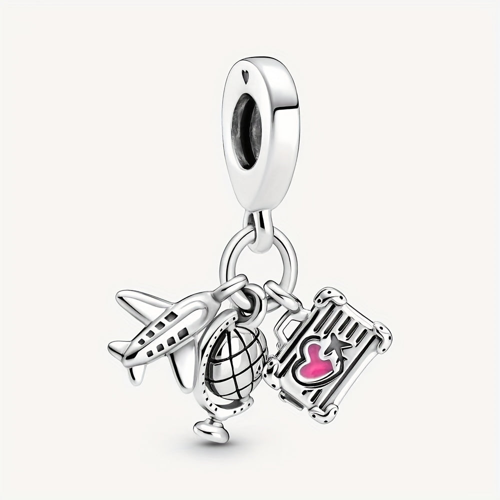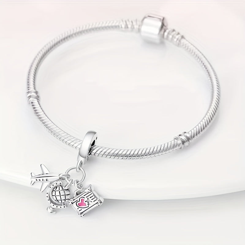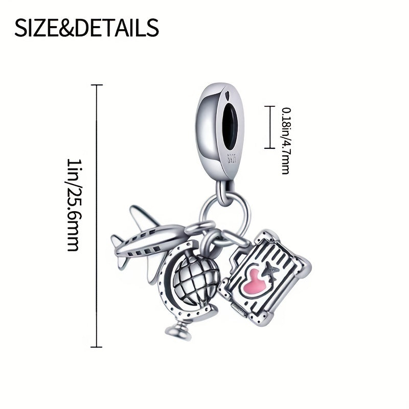 Add this charming silver plated globe airplane pendant to your collection. Perfect for creating personalized beaded bracelets or as a thoughtful gift for a woman's birthday.