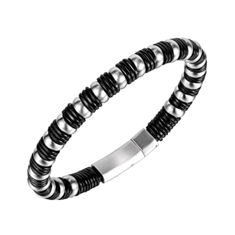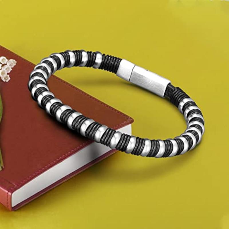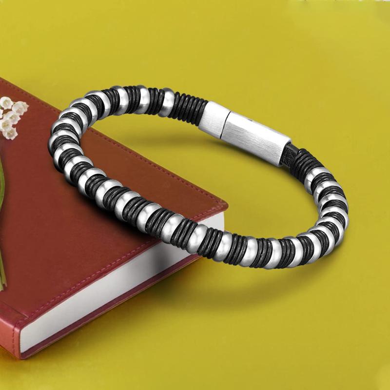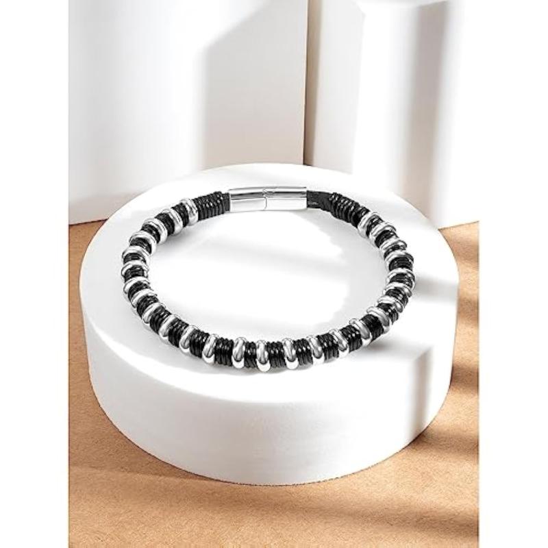 Elevate your style with this silver plated leather bracelet designed for men. It adds a touch of sophistication to any outfit.