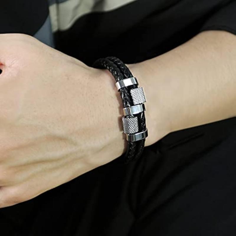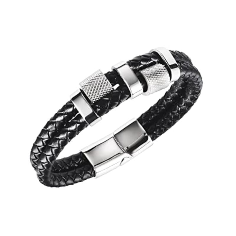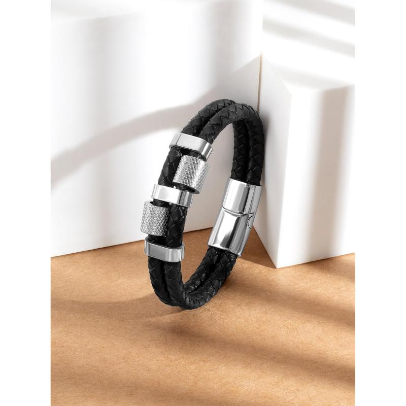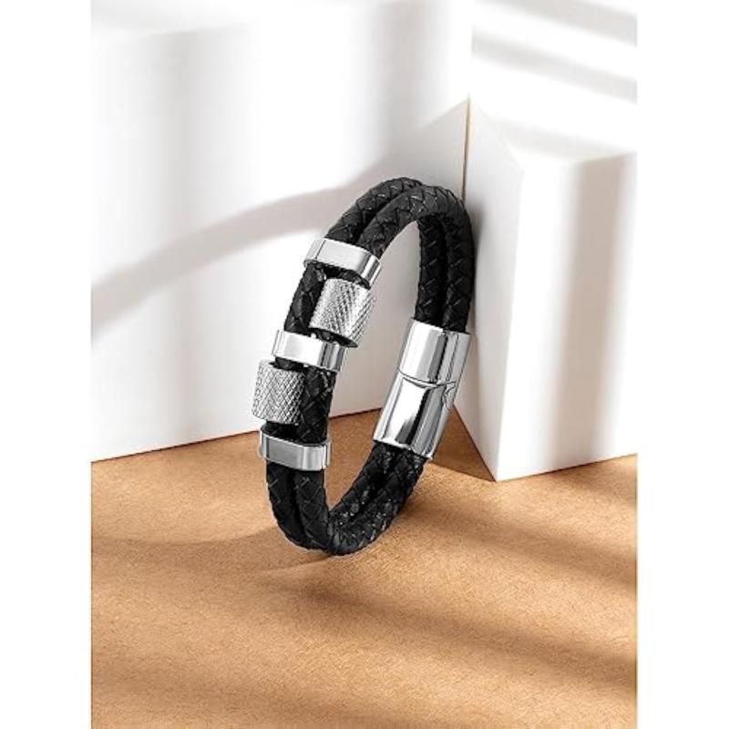 This silver plated leather bracelet is a stylish accessory suitable for both men and women. The unique design and high-quality materials make it a versatile piece of jewellery.