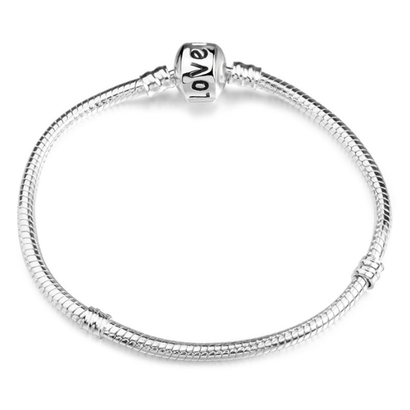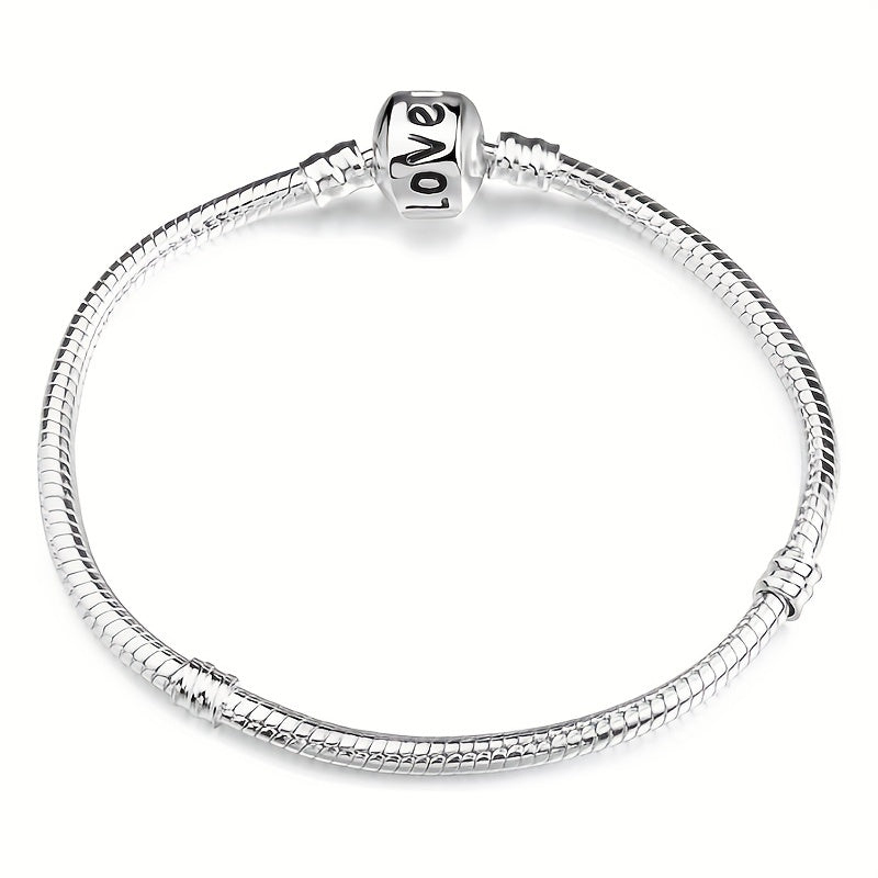 Create your own unique bracelet with this silver plated snake bone bracelet featuring a LOVE detail. Perfect for DIY jewelry projects.