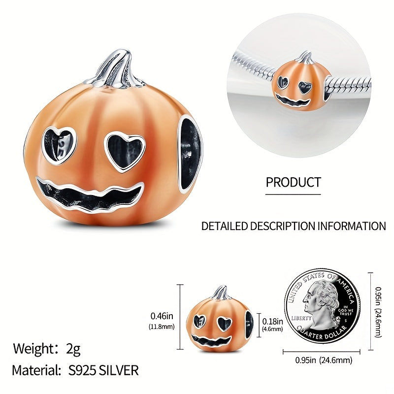 Add a touch of glow to your beaded bracelet with this silver plated pumpkin charm pendant. Perfect for birthdays and suitable for both men and women.