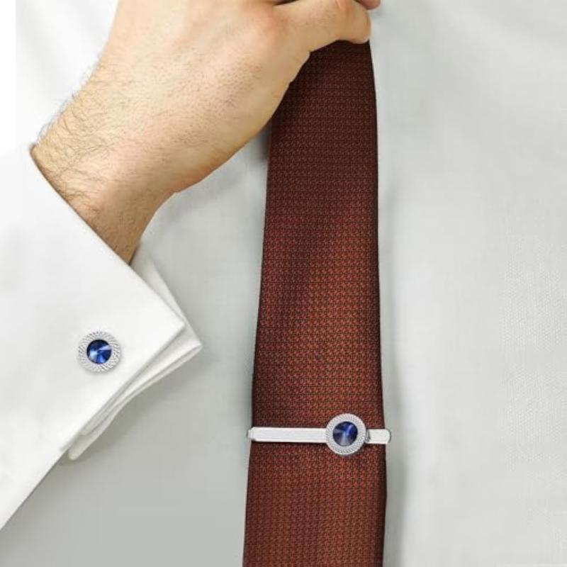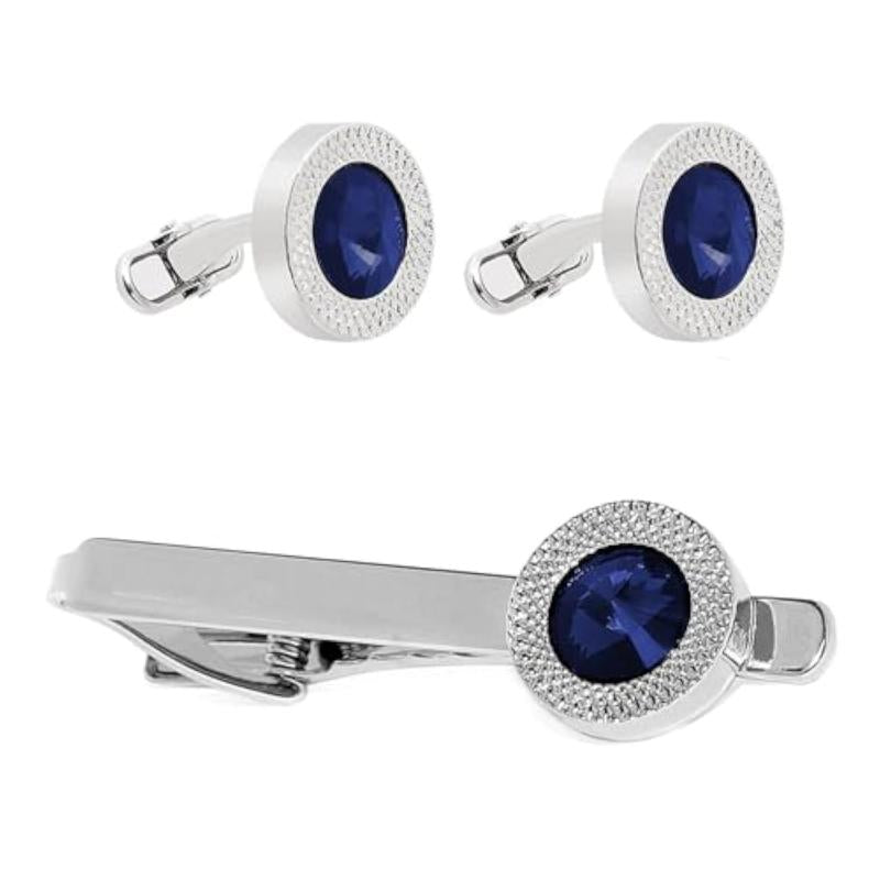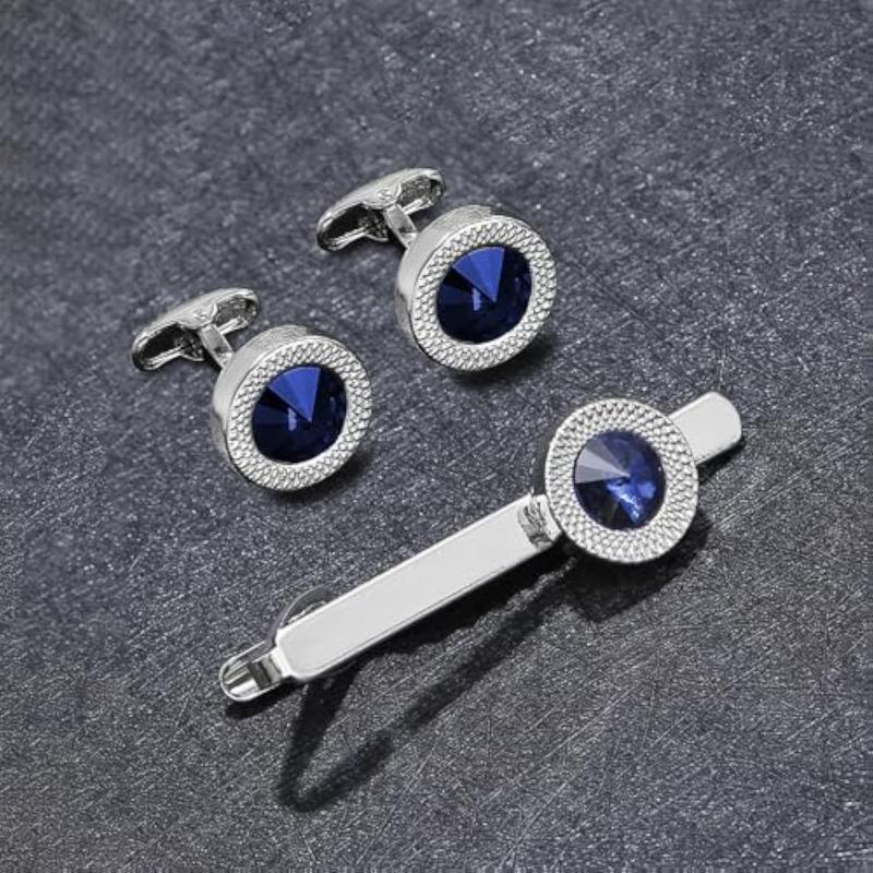 Elevate your formal business attire with this classic cufflinks and tie pin set. Made of silver plated 316L stainless steel with stone detailing, this set adds a touch of sophistication to your look.